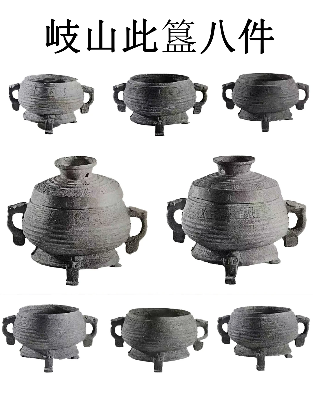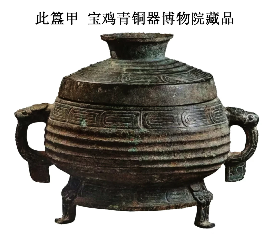 “此”家族器包含了3件此鼎、8件此簋。这八件簋俗称“岐山此簋”,西周厉王时期,1975年出土于陕西岐山董家村西周1号窖藏,现藏陕西宝鸡青铜器博物院。通高23.7-25.5厘米,口径19.2-20厘米。