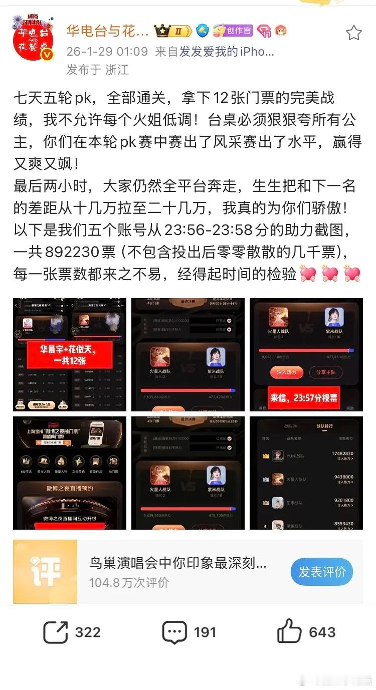 华晨宇家晒最后五分钟的囤票截图了现在晒图是在说对家氵吗?谁家啊🤔微博之夜这波操作确实是给粉丝们打 鸡 血了