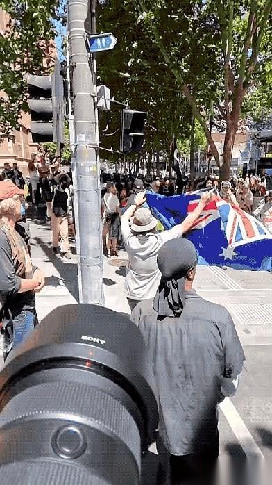墨尔本街头那段视频,看得人后背发凉。 一个男人,就因为手里举着一面澳大利亚国旗,