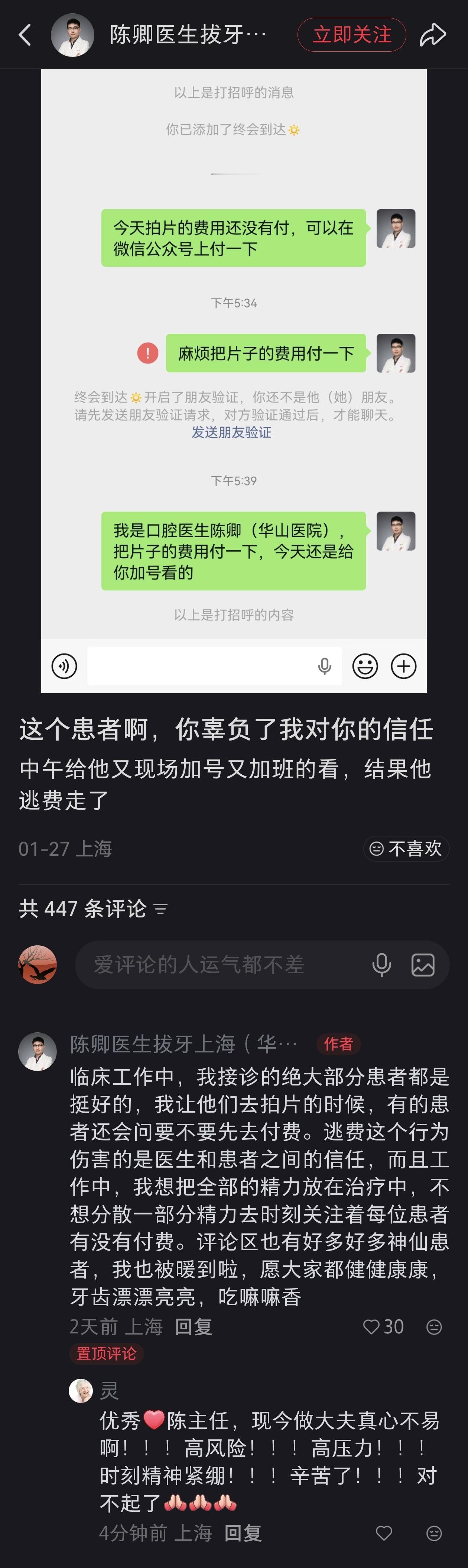 这就是一颗老鼠屎坏了一锅粥,这样的患者完全辜负了医生的一番好心,不仅令医生心寒,更消解医患之间珍贵的信任关系。