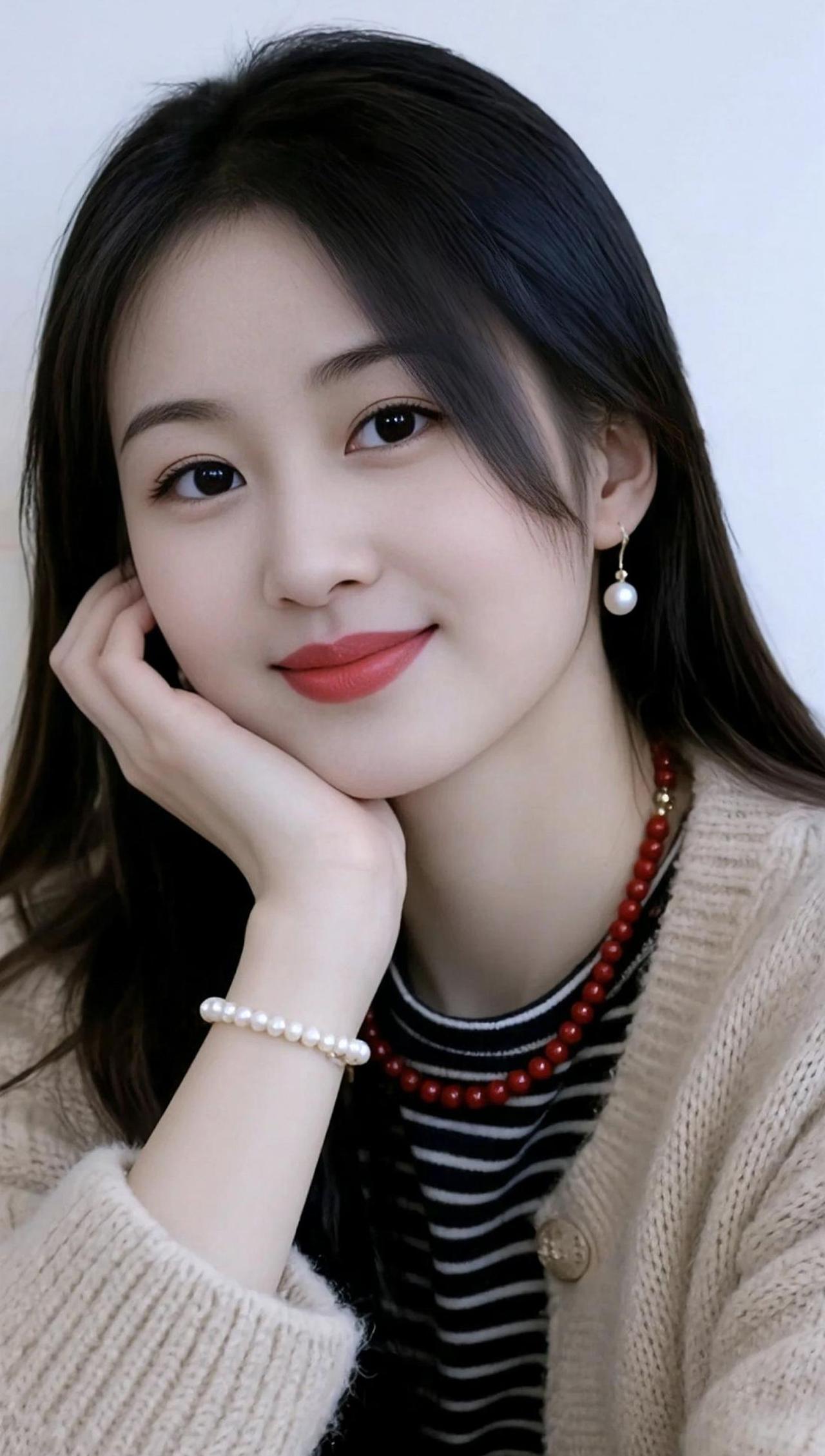 优雅气质,珍珠配饰,温柔微笑,完美女神