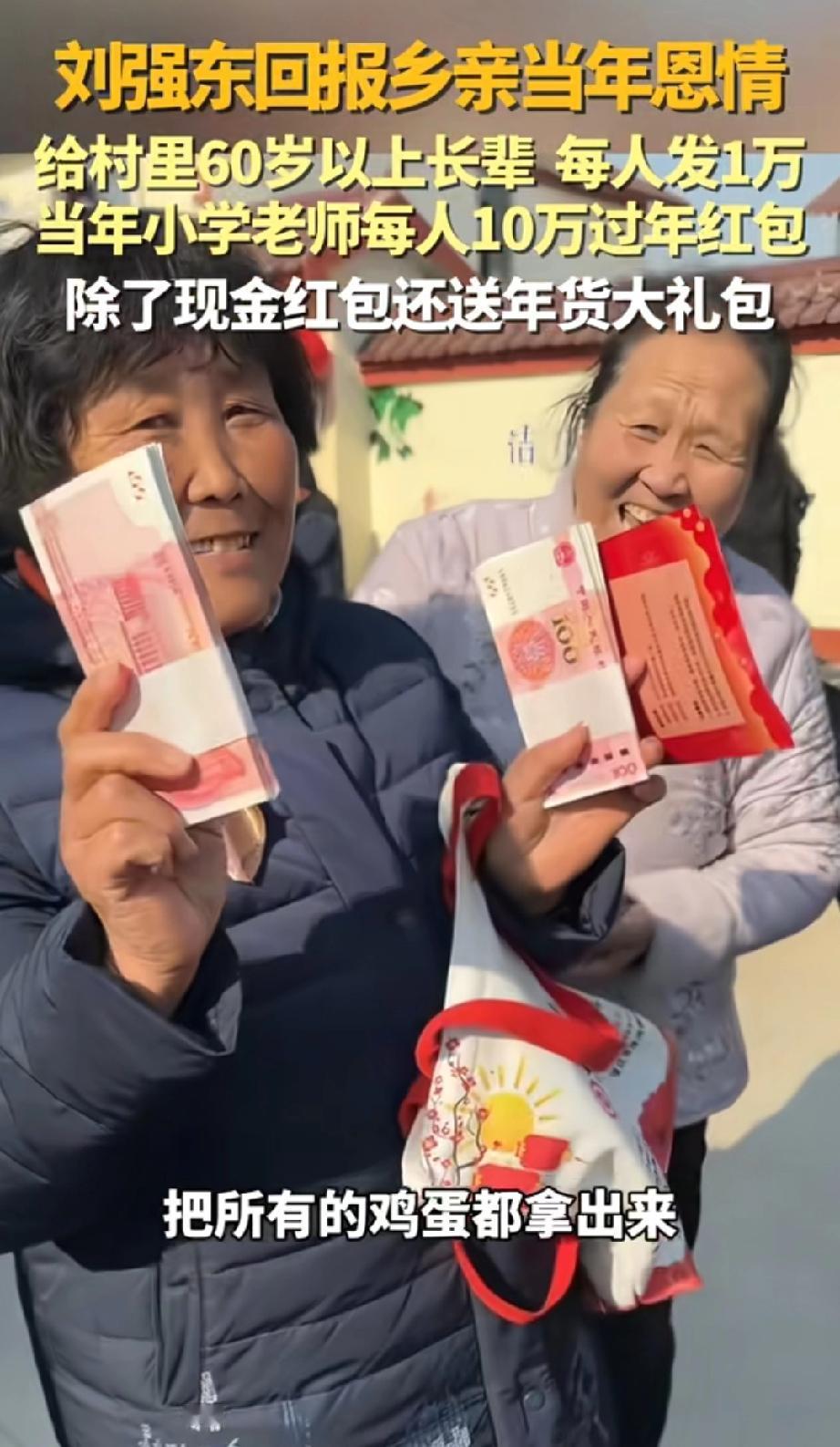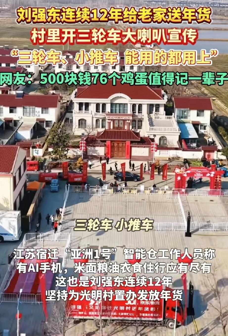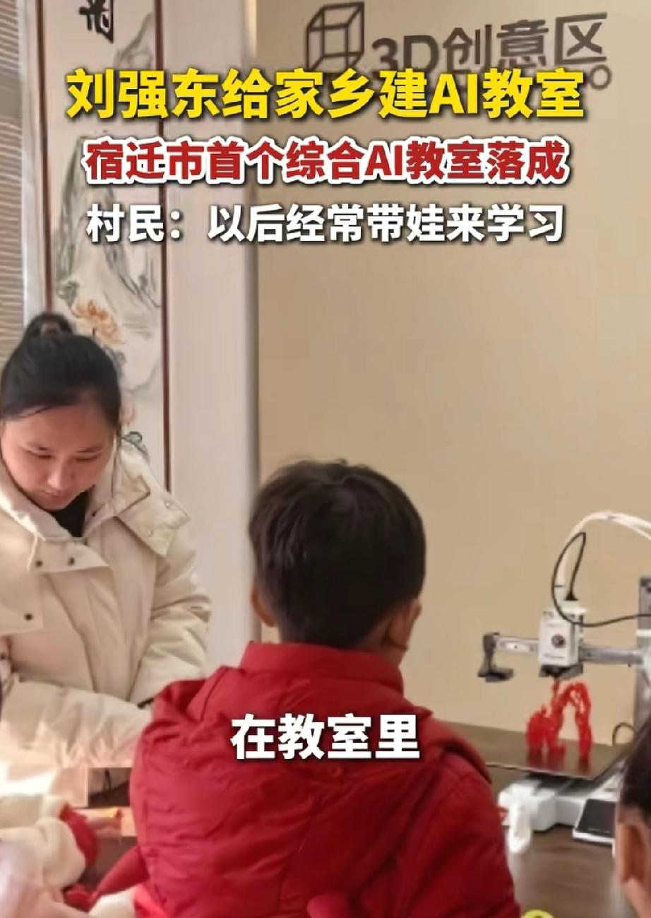 刘强东又给老家送年货啦! 米面油、家电日用品样样齐全,给老人准备了能识方言的AI手机、血糖仪,60岁以上的老人还能领到万元红包,家家户户都拎着满满当当的年货,脸上笑开了花。 更让人开心的是,村里的AI教室也落成了!孩子们围着3D打印机,看着自己的画变成实物,和AI机器人下棋、跟着智能老师学英语,笑声飘满了整个教室,乡村的孩子也能摸到前沿科技,不用羡慕城里娃了。 从给钱给物,到建AI教室为孩子的未来铺路,这份惦记,一守就是十几年。 村里人都说,大强子走得再远,心里始终装着老家。年货满仓,娃有学上,日子过得红红火火,这就是最实在的幸福!