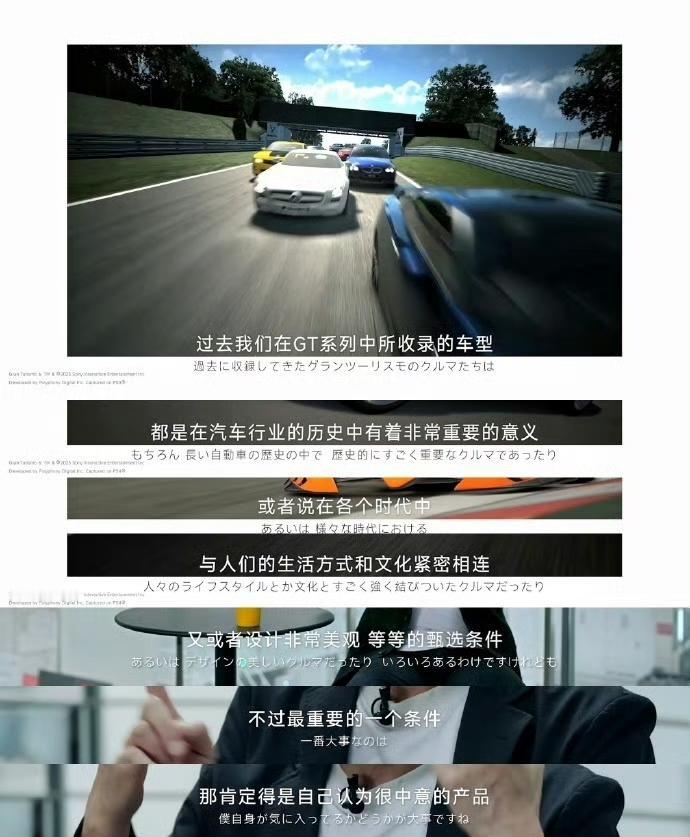 看看GT 赛车山内一典的评价,对于小米su7 ultra是高度赞扬。GT 赛车的每一辆车都有汽车行业历史的重要意义,而小米su7 ultra的历史意义在哪里,我觉得就是把中国新能源汽车推向了工业设计和极致机械素质的巅峰。当然肯定不是顶峰,因为后期一定会有后来者和追逐者,就像雷总说的后来者总有机会。但在阶段性表现上,小米su7 ultra在发布的这一年多机械素质和赛道表现上难逢敌手。这就是它的意义所在,后三张图是截取的GT7给小米 su7 ultra做的宣传片内容,看整个姿态和质感,足以见证GT团队对于su7 ultra的绝对肯定和喜爱。因为只有真正喜爱,才会全心塑造!