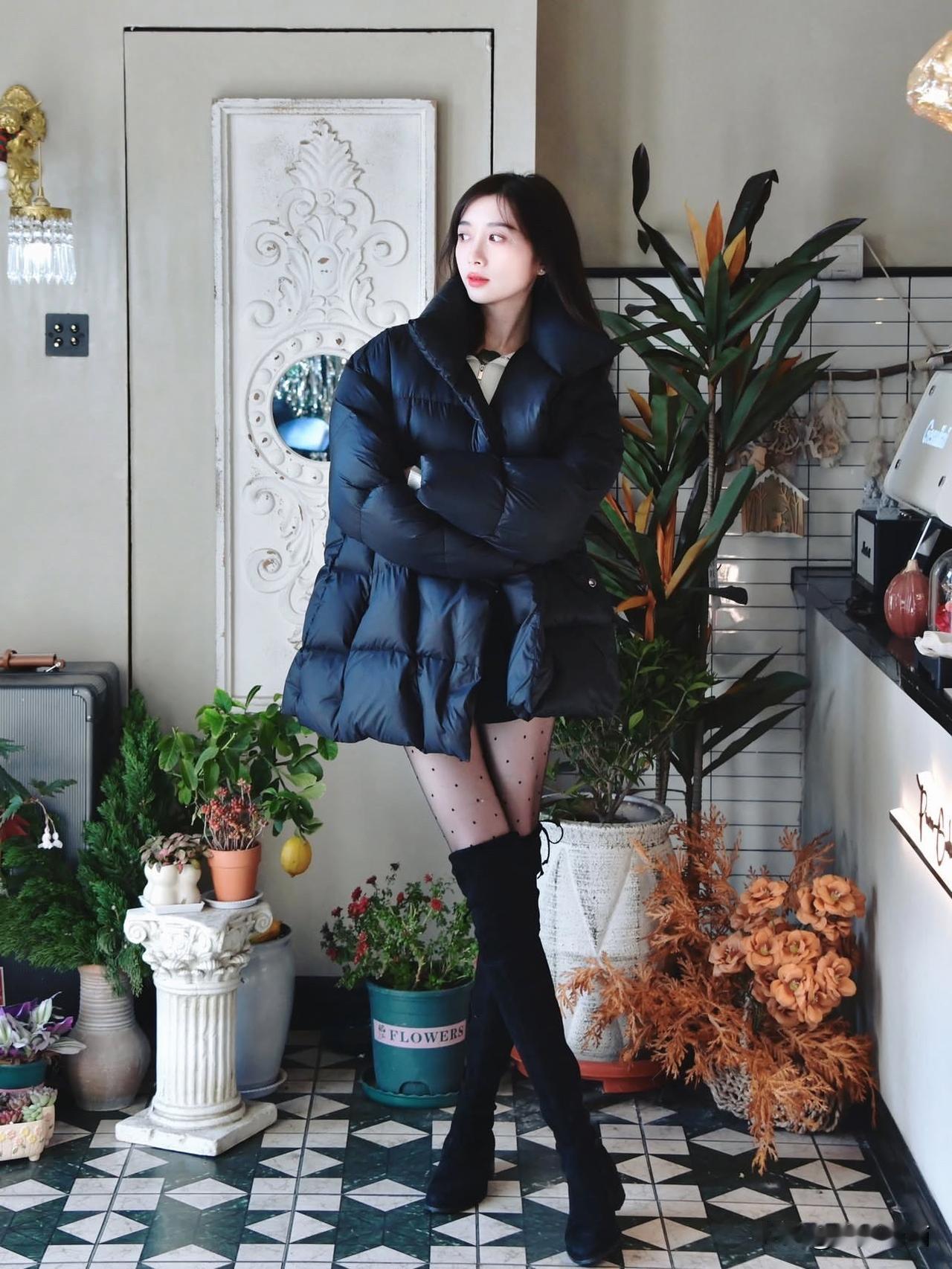 灰色大衣配灰波点袜,优雅温柔与灵动巧妙交织。灰色大衣,柔和似暮色轻纱,内搭白色,