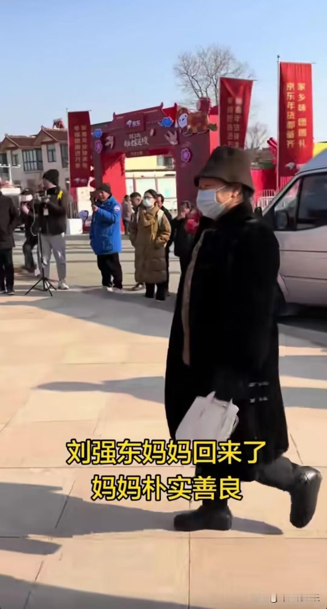 刘强东妈妈回光明村! 穿着大衣,提着小白包,这就是短剧中的豪门老太太。身后跟着的人手里提溜了一袋韭菜,这是又要给到光明村工作的京东员工包饺子。因为去年,光明村发年货时,京东的员工就是到刘强东家里吃饺子。那么老太太回村,明天就开始发年货,再给员工们做饭。 这画面反差感也太强了!精致大衣配小白包,看着是气派的豪门长辈,可拎着的韭菜一亮相,瞬间就满是家常味儿,一点架子都没有。 谁能想到千亿富豪的母亲,回村不为摆排场,反倒惦记着忙活年货的员工,特意带了韭菜要包热乎饺子,这份心意比啥都暖人。 这可不是一时兴起的作秀,去年发年货时,京东员工就被请到刘强东家里,吃着老太太亲手包的饺子,热热闹闹跟一家人似的,今年不过是把这份温暖延续下来。 老太太本就是农村出身,早年跟着老伴跑船、卖豆腐吃过苦,就算儿子成了大企业家,刻在骨子里的朴实也没丢。在京东宿迁食堂,她常年帮厨包饺子、摘菜,下班还骑三轮车带菜叶回家喂鸡鸭,早就习惯了这样的生活。 明天10点就要正式发年货,8辆大货车拉着超万件物资已经进村,老太太赶在这时候回村,既想给乡亲们添年味,也想让辛苦的员工吃上一口家常饭。 不光对员工亲,她对乡亲们也格外热络,回村就拉着邻里唠家常,没有半分隔阂。村民们提起她,都说老两口从来没变过,待人谦和又实在,就像普通街坊一样。 说到底,真正的豪门不是珠光宝气的派头,而是藏在细节里的善意。老太太带着韭菜回村包饺子,包的是对员工的关怀,更是对家乡的牵挂。这样的家风、这样的乡情,比任何财富都更动人,也难怪大家都为这家人的温暖点赞! 各位读者你们怎么看?欢迎在评论区讨论。