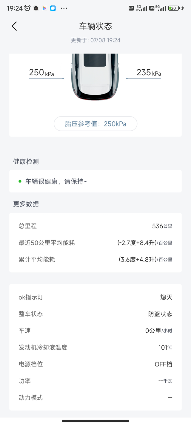 提车10天了,总里程536去掉提车表显20公里,跑了516公里,有60公里左右的高速,其余全是市区,出了4S店加满了油,电量剩余50%左右,只要开车就开空调,感觉用油跑,能耗太高了。