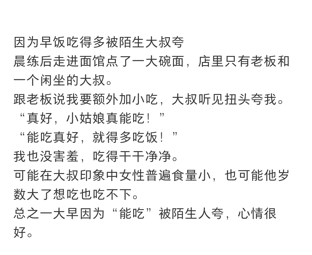 因为早饭吃得多被陌生大叔夸了