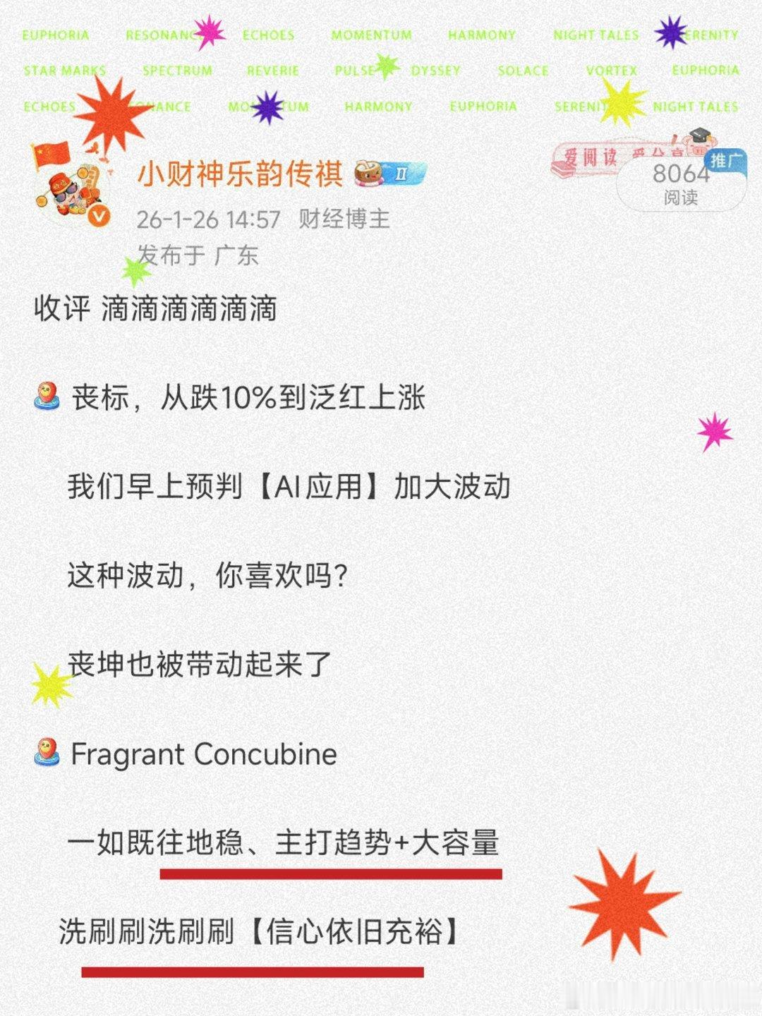 Fragrant Concubine 为例跌到57、58这两天我们研判: 洗刷刷+信心以旧充裕这种逆势博主、您喜欢吗?早安,周四豆包上证指数 sh000001阿里巴巴科大讯飞谷歌