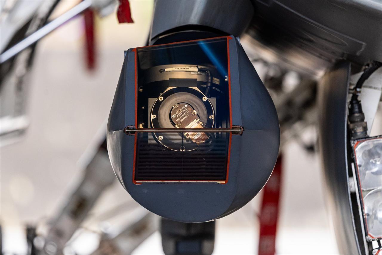 近观伪军F-16V配备的AN/AAQ-33“狙击手”吊舱。 伪“空军第4联队第23作战队”进行春节加强战备操演,女飞官陈怡慈成为现场亮点。 AN/AAQ-33“狙击手”吊舱是由美国“洛·马”公司研制的一种先进光电/红外瞄准吊舱,主要用于对地/对海攻击任务,但也具备一定的对空探测能力。 吊舱集成了前视红外探测器(FLIR)、CCD电视摄像机、双波段激光器(测距与照射)、激光光斑跟踪仪和激光指示器等设备。 其前视红外探测器FLIR采用512×640单元的锑化铟凝视焦平面阵列,工作于3-5微米中红外波段,可穿透云层和烟雾,实现昼夜全天候目标探测。对战斗机大小的目标最大探测距离可达160公里。在天气晴朗条件下,可对40-50公里外的目标进行清晰识别,分辨率可达0.1米级,支持1080P高清视频捕捉。 吊舱具备红外搜索与跟踪(IRST)模式,可被动探测目标红外信号,实现静默状态下的目标锁定。 “狙击手”吊舱设计核心是为激光制导弹药提供精确的目标指示、照射和引导,执行对地/对海精确打击任务。同时,其高分辨率成像能力也使其成为执行情报、监视与侦察(ISR)任务的重要平台。