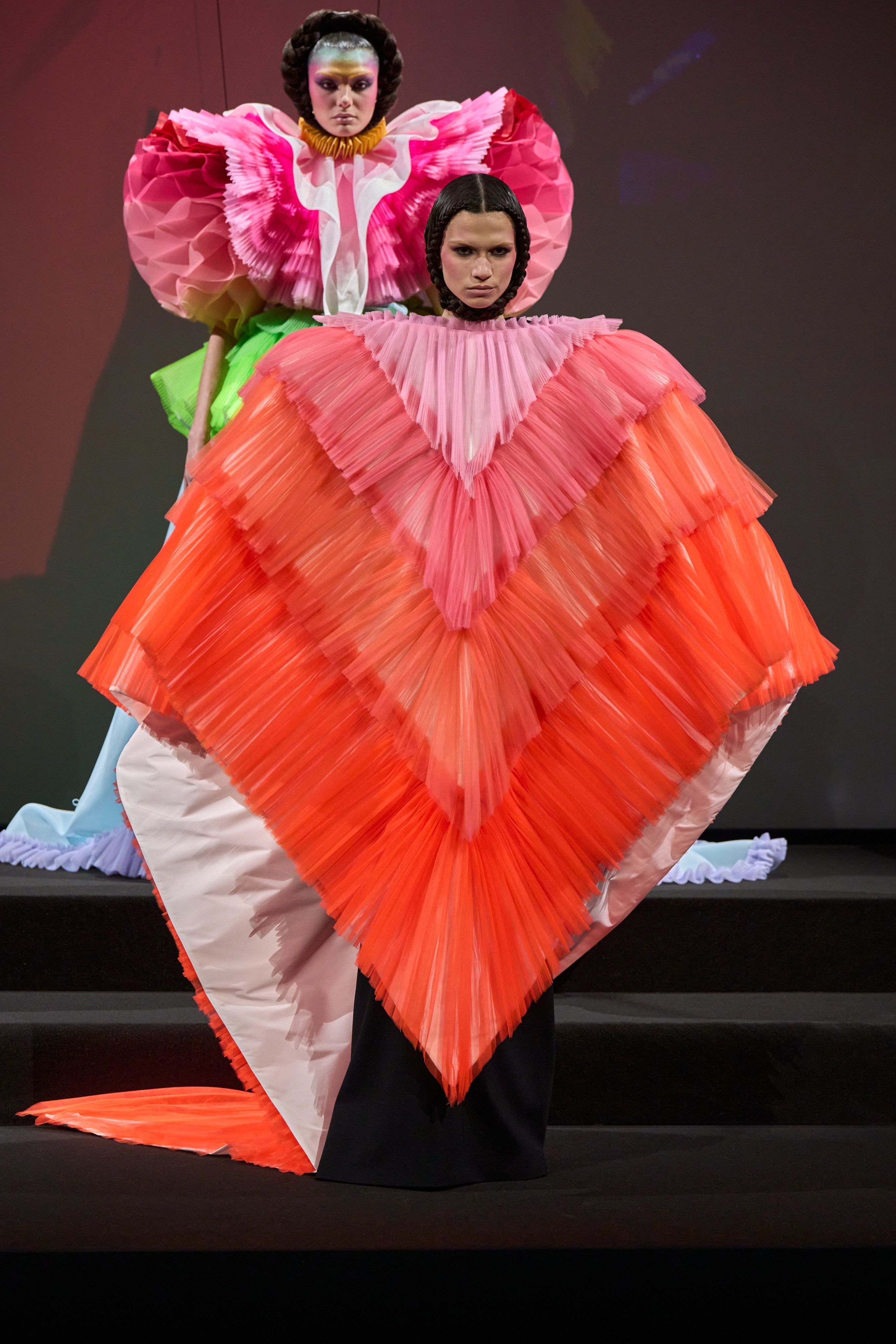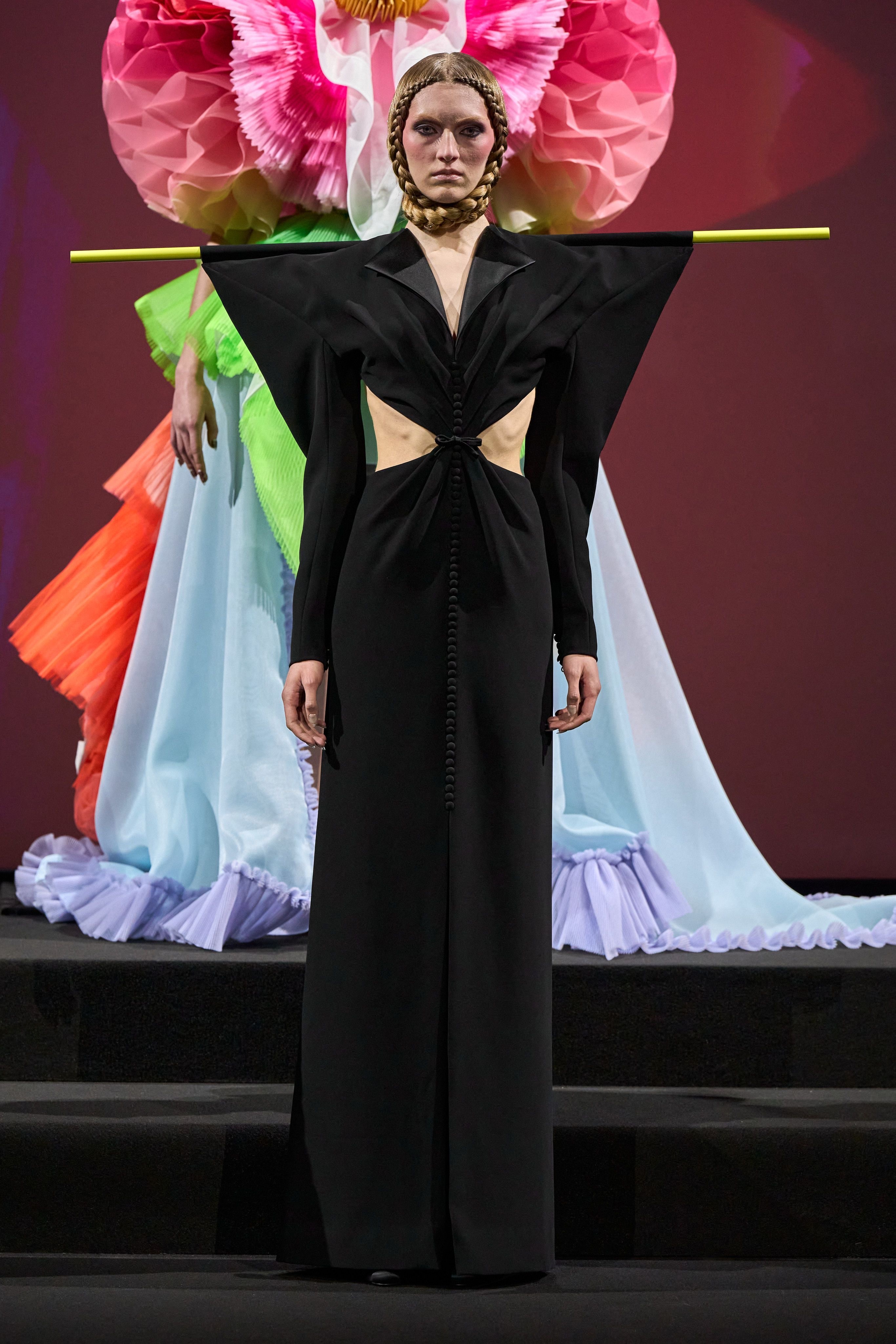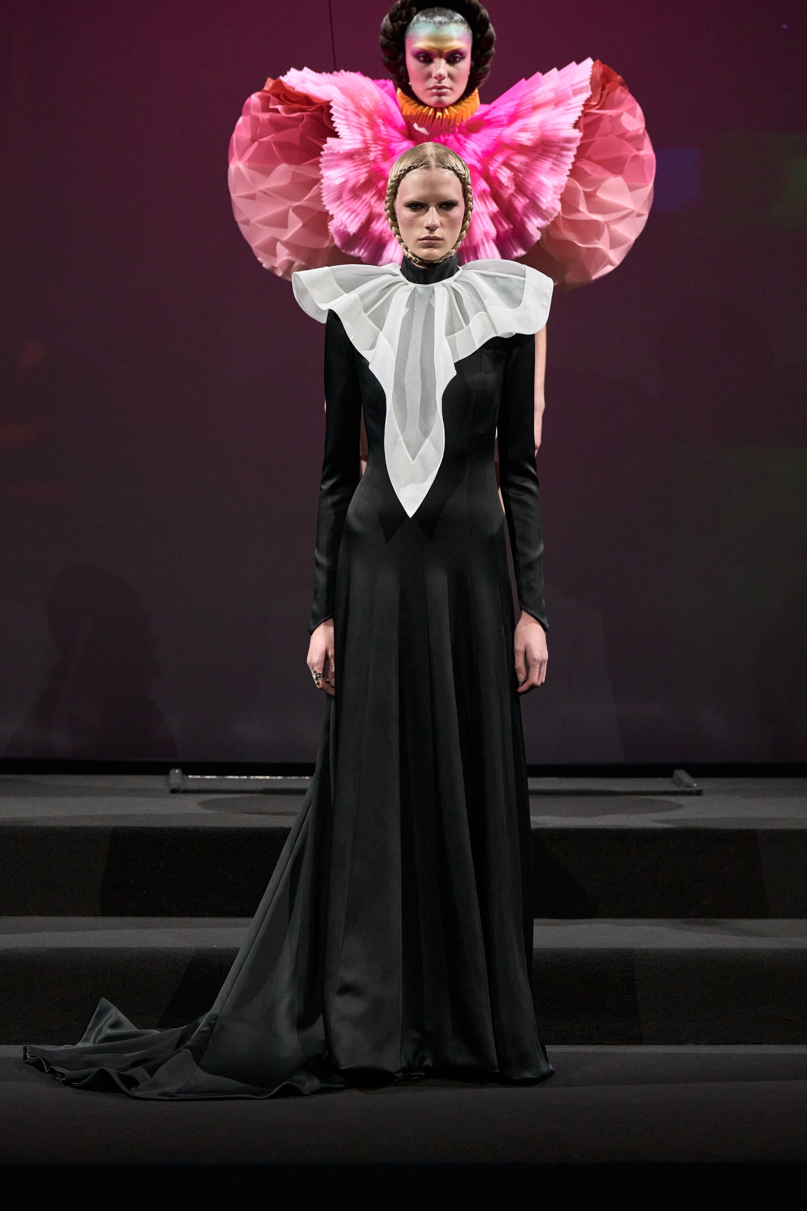 2026 春夏 巴黎高定时装周 Viktor & Rolf 2026 S/S Haute Couture补上完整秀场图 ,有时候真的很佩服这两位的脑洞 ,本季 Viktor & Rolf 的秀场设计是摘取掉前 15 套常规廓形造型中非黑色的部分 ,不同色彩集中在一起 ,便诞生了最后以风筝形式漂浮在空中的 Look 16 ,解构并重构 ,别的不说 ,二位在实验性前沿道路上倒真的是孜孜不倦