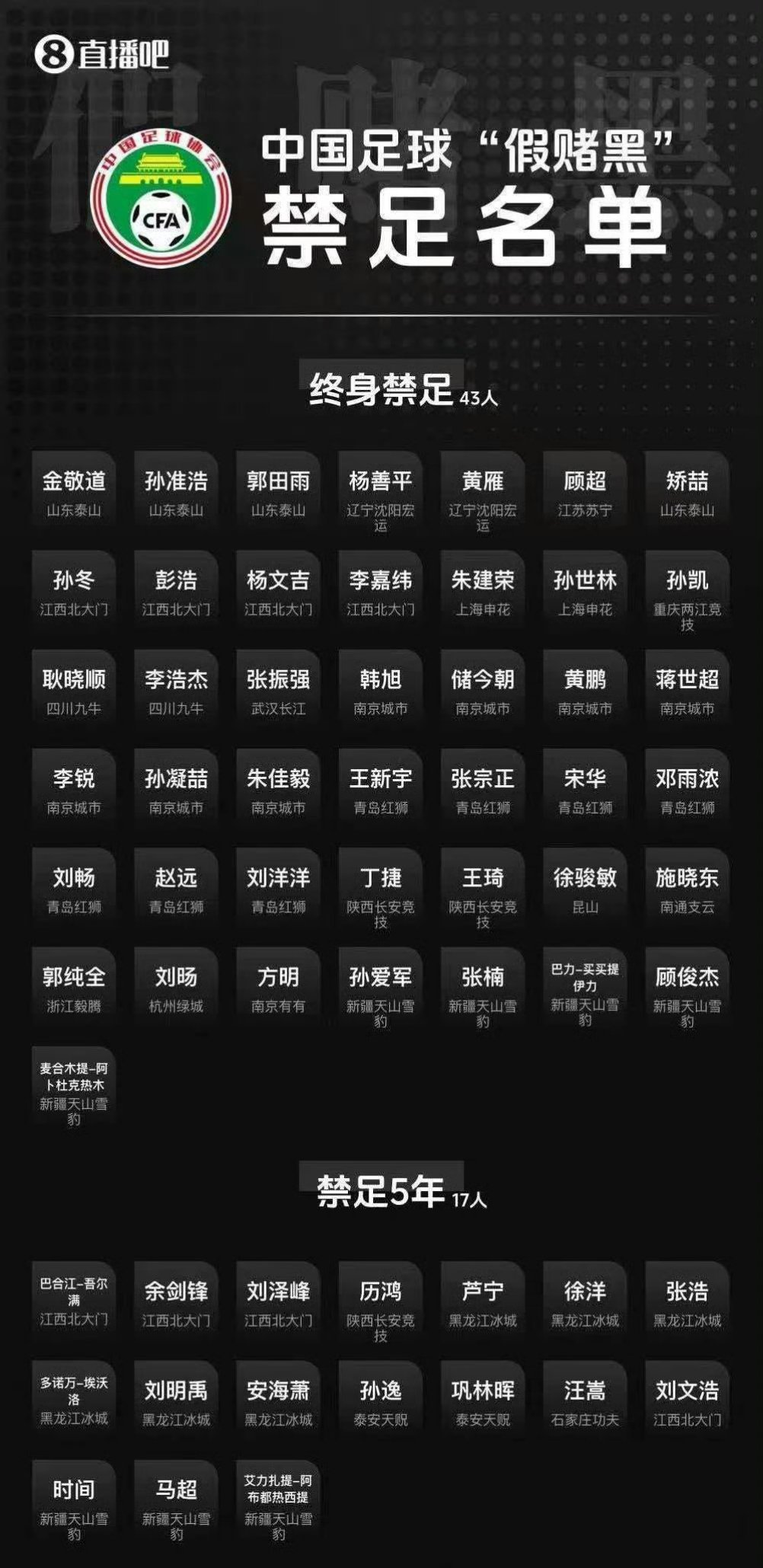 中国足协整治“假赌黑”专项行动,禁足了这么多人,不知道整治完以后,能不能给中国足球带来改变吧