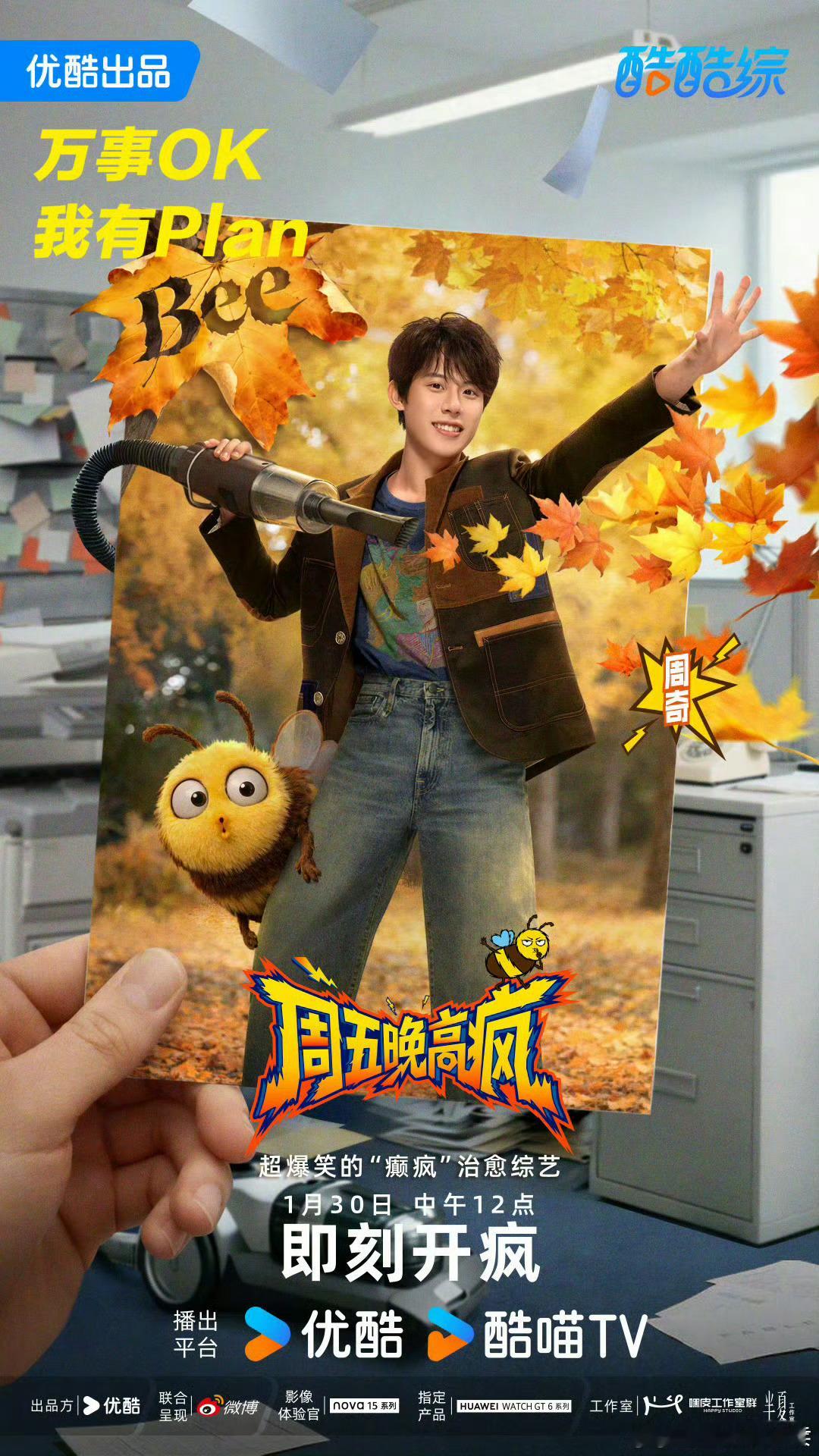 周五晚高疯定档0130优酷《周五晚高疯》定档1.30中午12点!高叶松弛感拉满,周冬雨花式整活,Bee疯糖家族组团发疯解压,这场爆笑治愈局必须蹲住!周五晚高疯