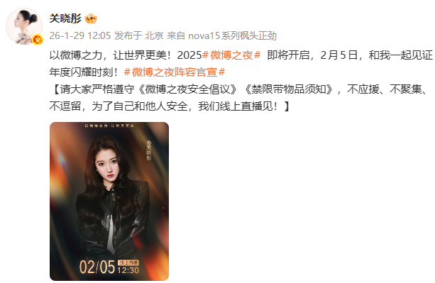 关晓彤官宣2025微博之夜关晓彤出席2025微博之夜