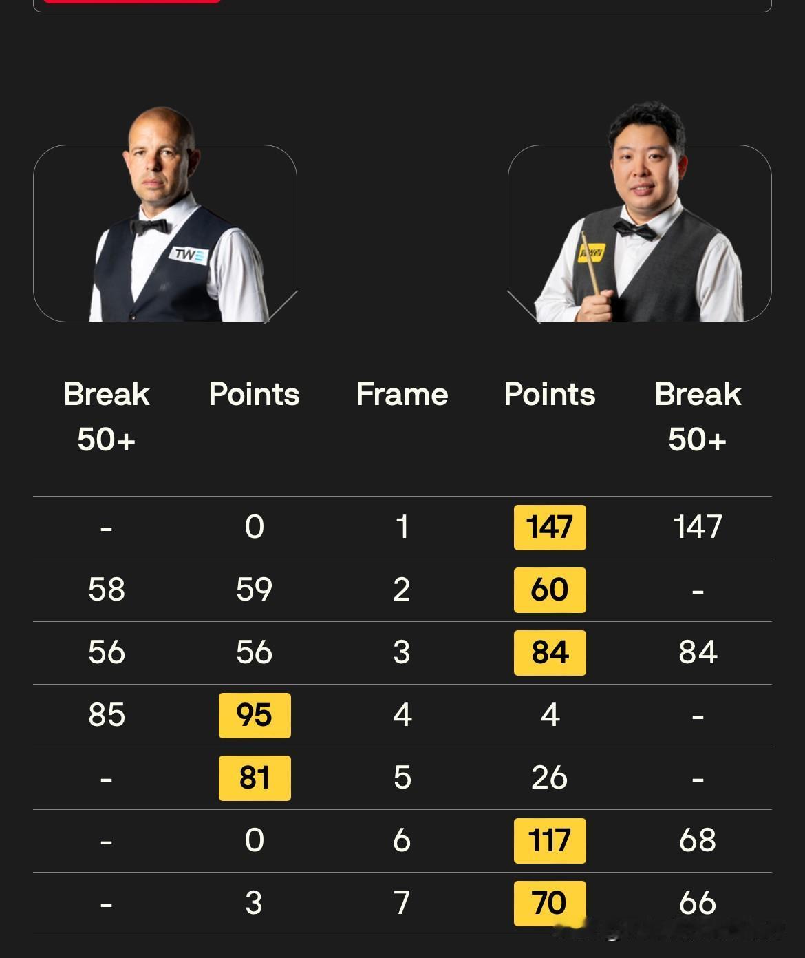 张安达击败霍金斯赛后谈到自己的第五杆147:“在德国打出单杆147真的很特别,最棒的是一开局就完成了。坦白说那一局前面的阶段我压根没想过去打147,这只是后来才意识到,我感觉现场观众都知道我想干什么,这里的气氛太棒了,我很享受那一刻。” 张安达在德国大师赛32进16轮次凭借第一局轰出职业生涯第五杆147,最终以5-2大胜霍金斯,将在下一轮挑战卫冕冠军凯伦·威尔逊。 张安达轰出生涯第5杆147