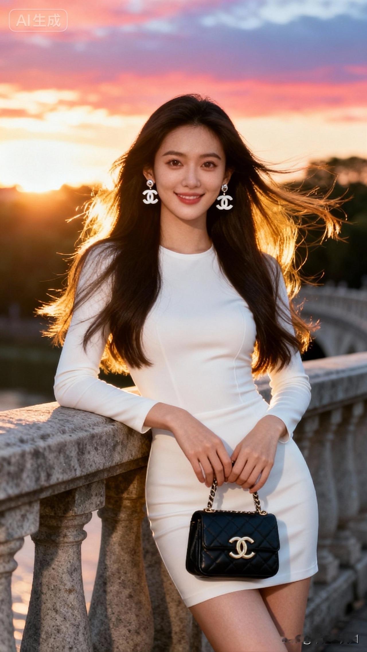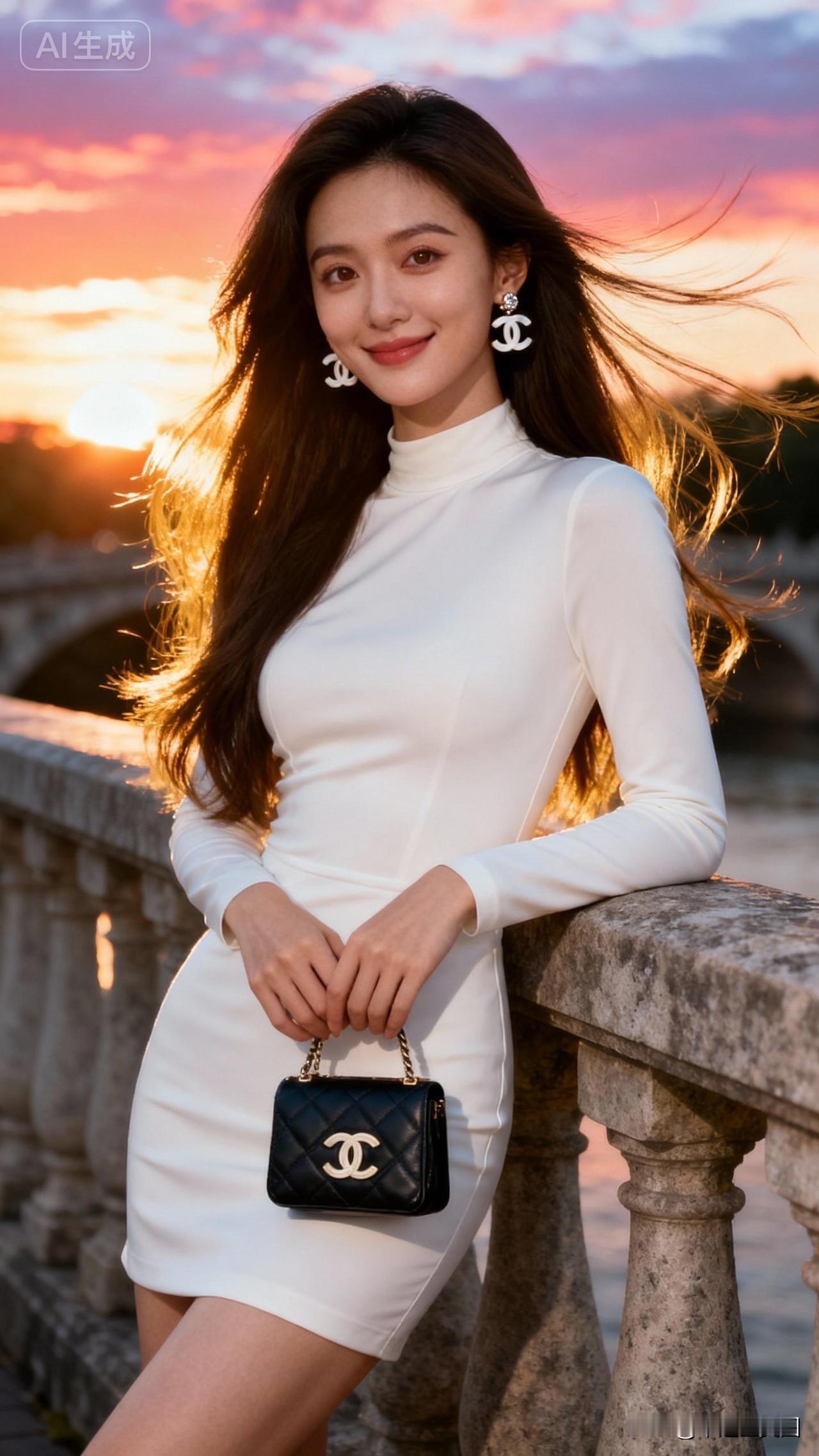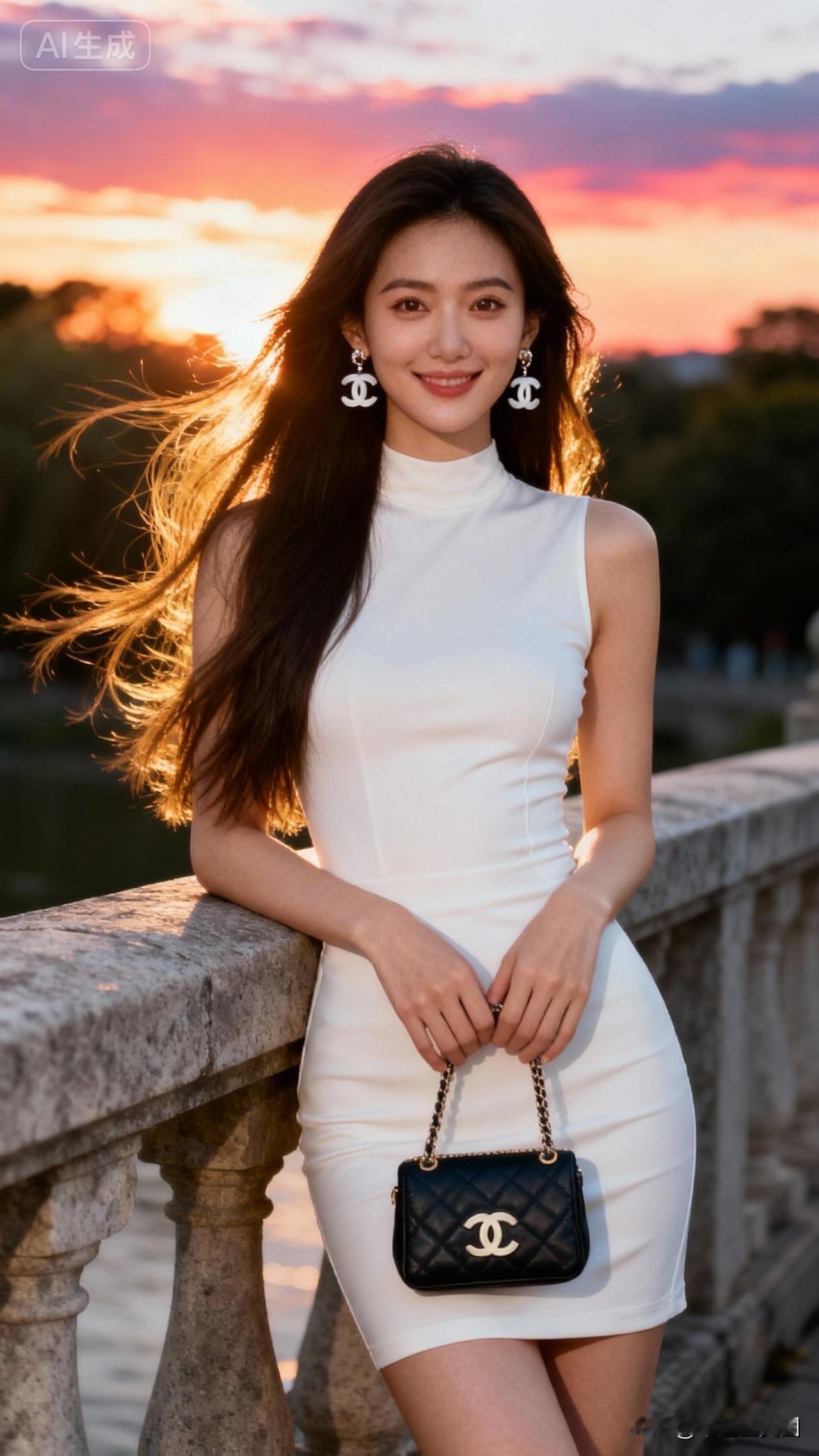 夕阳下的优雅白裙,时尚与自然完美融合🌅👗💄