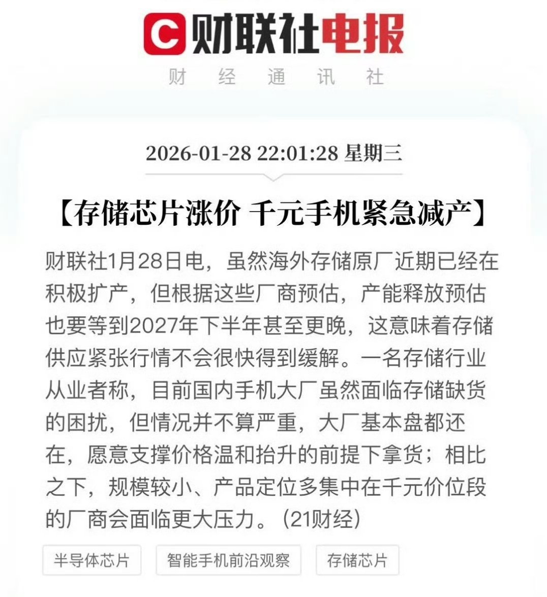 存储芯片涨价千元手机减产存储价格已经涨了3倍了,千元机本来各大品牌利润就非常低,现在被针对一搞,减产也是预料之中,甚至可能涨价也都是正常的,这种内存不受自己控制的情况下,价格真的就是任人拿捏。