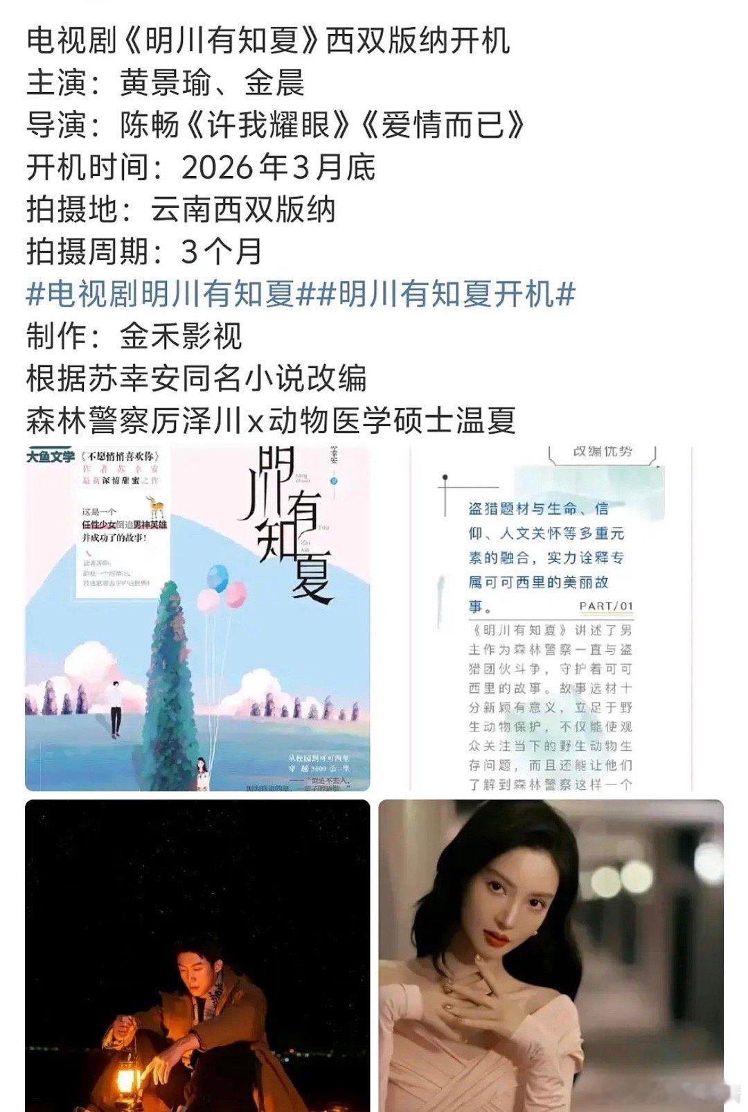 黄景瑜跟金晨新剧《明川有知夏》3月就要开了,可以换谁