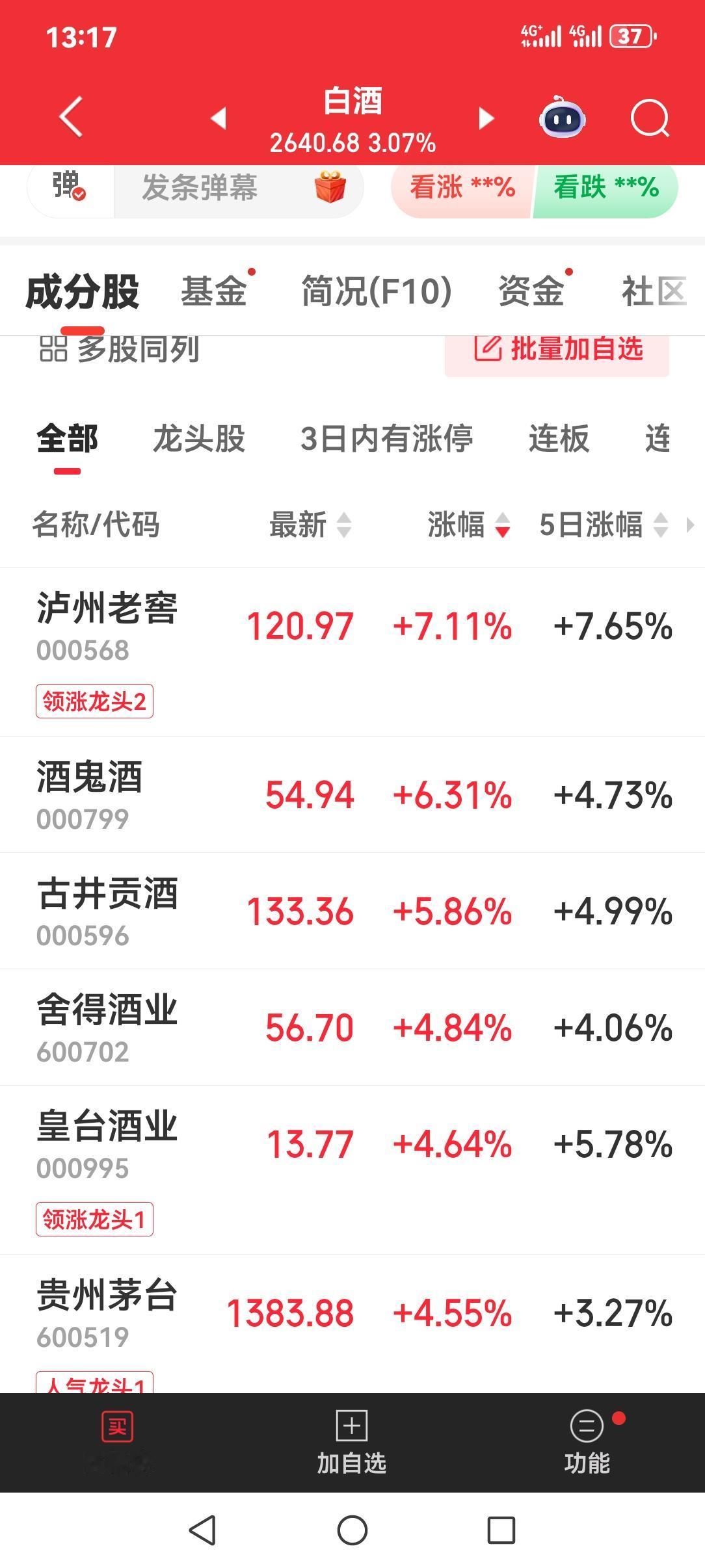 白酒股今天(1月29日)下午反弹,很难理解,三季报亏损股酒鬼酒竟然涨幅排第二。 前两天洋河股份预告2025年业绩,虽然盈利大幅降低,好歹人家也没亏损,但是那天股价下跌百分之九点多。真是看不懂呀!今天下午凭什么亏损股涨幅排前面?这酒鬼酒哪方面比洋河股份强?大家讨论一下。