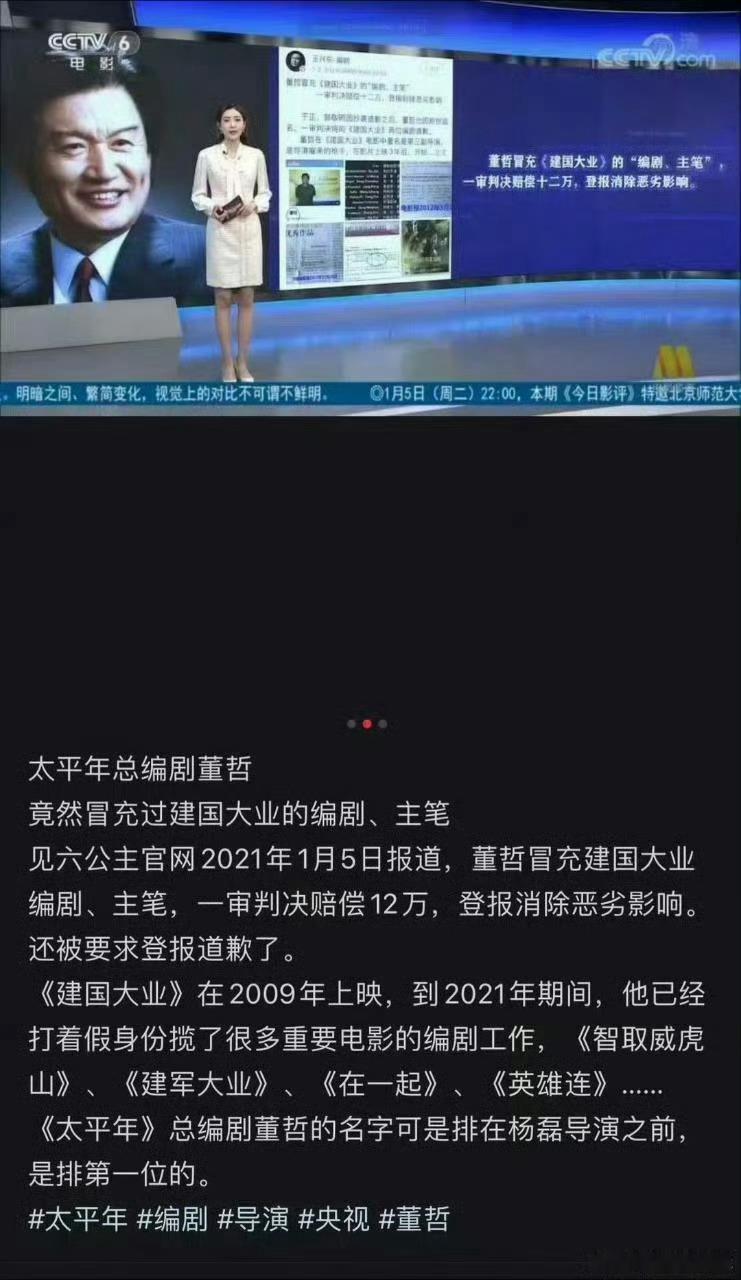白宇主演的新剧《太平年》正在央视播出,编剧董哲被央视2021年打假为冒充编剧?登报道歉过的人,这才几年打着假身份排在杨磊导演前面署名上了央视……这种事闹出来不会影响剧播吧