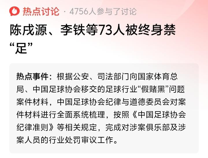 中国足球大地震!北京足协大楼深夜灯火通明,73人终身禁足名单背后,是亿万球迷被偷走的青春与热血! 当那份长达数十页的处罚通报在深夜公布时,无数尚未入睡的球迷瞬间清醒。这不仅仅是一份名单,这是一份沉甸甸的“罪己诏”,是中国足球向黑暗过往挥出的最决绝一刀。陈戌源、李铁、杜兆才……这些曾经位高权重或风光无限的名字,如今被永久钉在了中国足球的耻辱柱上。我们等待这一天,等了太久。 看看那些被处罚的俱乐部,从津门虎、申花到泰山、海港,几乎囊括了中超的半壁江山。扣分、罚款,数字背后是那些被操纵的比分、被交易的胜负、被玷污的绿茵场。每一分不义之财,都曾浇灭过看台上的一份热情;每一次默契的“失误”,都曾深深刺痛过深夜守候在电视机前的真心。 从国家队主帅到俱乐部高管,从知名国脚到普通球员,甚至裁判、足协官员……这张密密麻麻的网,织就了中国足球最晦暗的一段时光。他们交易的何止是比赛?他们典当的是国家荣誉,透支的是行业信用,碾碎的是整整一代球迷的足球梦。当李铁们在高档场所推杯换盏时,可曾想过那些省吃俭用买票入场的孩子? 我们愤怒,但愤怒之后更应冷静。这份史无前例的“清洗”名单,展现的不再是“罚酒三杯”的敷衍,而是刮骨疗毒的决心。它传递出一个再清晰不过的信号:无论你是谁,无论你曾有多高的地位,触碰红线,终身出局。这是重建公平竞赛环境的基石,也是给予所有仍坚守之人的最基本交代。 当然,处罚不是终点,而是起点。扣分能否真正警示后来者?罚款能否弥补联赛公信力的损失?更重要的是,铲除了腐烂的根系后,健康的种子能否真正破土而出?我们需要看到更透明的机制,更独立的监督,让阳光照进每一个更衣室和办公室。 球迷的心,是世界上最坚韧又最脆弱的东西。它可以经受一次次失败的打击,却难以承受背叛与欺骗。这份名单,是对过往错误的清算,更是对亿万球迷的一次郑重道歉。它告诉我们,那些年的意难平,并非我们热爱的足球本身错了,而是守护它的人一度迷失了。 黎明前的黑暗最为深沉,也最接近光明。中国足球的这次“外科手术”般的大整顿,痛彻心扉,但也孕育着新的希望。当我们看到污泥被清除,才能更安心地期待清水注入。请给改革一点时间,给真心热爱这项运动的人们一点时间。 历史的这一页已然翻过,带着阵痛与反思。未来,需要我们每一个人共同监督与书写。唯有纯粹的热爱,配得上那一片绿茵;唯有绝对的干净,对得起胸前的国旗。这一次,我们期待一个真正全新的开始。 (来源:综合新华社、直播吧等官方通报) 中国足球 反腐风暴