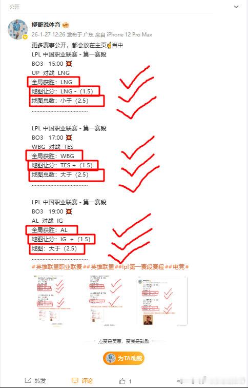 更多赛事公开,都会放在主页☝️当中LPL 中国职业联赛 - 第一赛段BO3 17:00 💥TT 对战 NIP全局获胜:NIP地图让分:NIP -(1.5)地图总数:小于(2.5)………………………………LPL 中国职业联赛 - 第一赛段BO3 19:00 💥JDG 对战 WBG全局获胜:JDG地图让分:WBG +(1.5)地图总数:大于(2.5)………………………………英雄联盟职业联赛英雄联盟lpl第一赛段赛程电竞