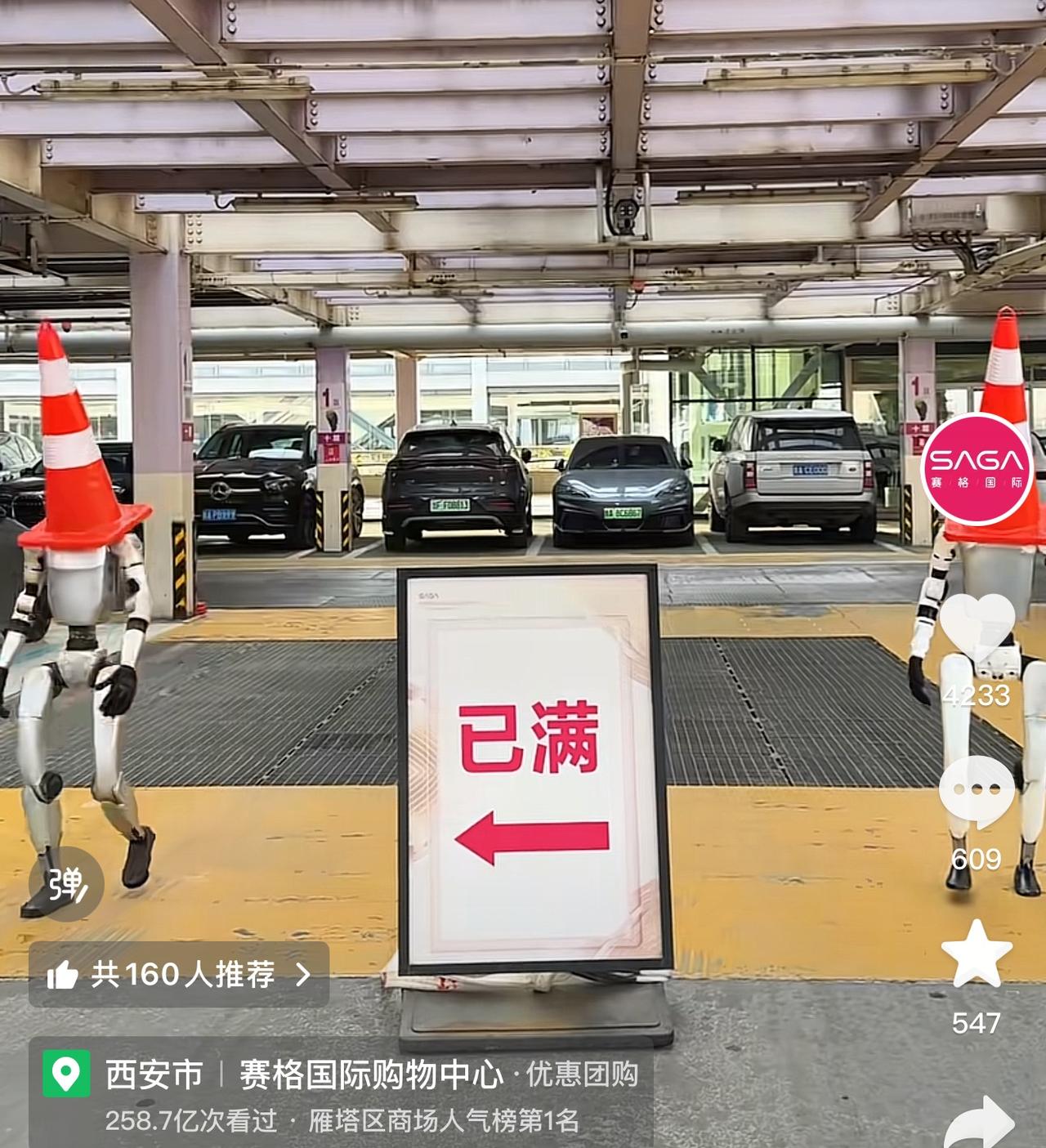 估计是西安第一家,西安赛格国际真的太牛了! 近日,开车去西安赛格国际购物中心的人,估计被震撼了,车库竟然全部是AI机器人指挥司机,这些机器人走路非常潇洒,指挥非常精准独到,服务非常到位贴心,已经完全替代了人,西安赛格官方已经发布了,这些机器人非常可爱,大家看!