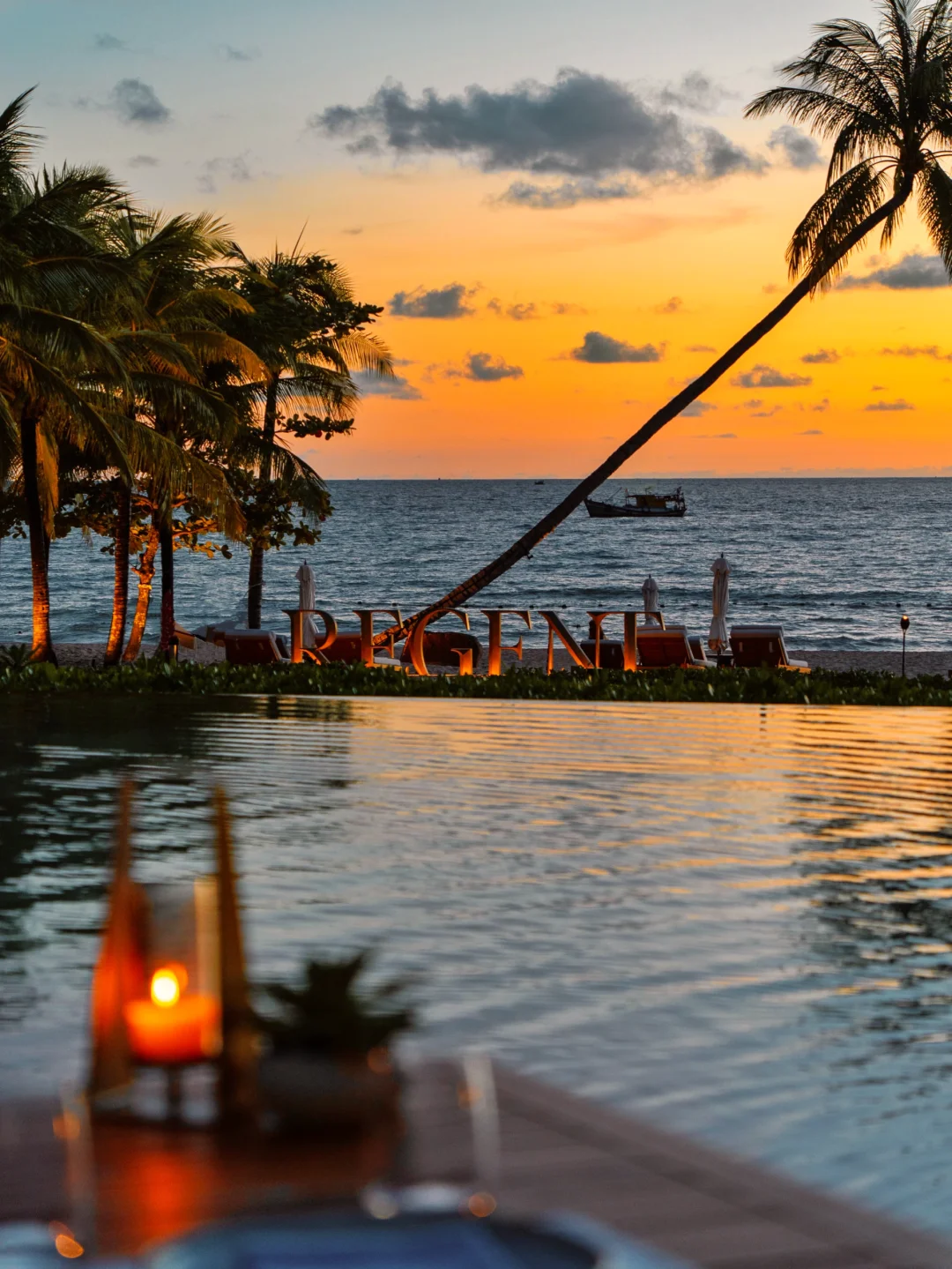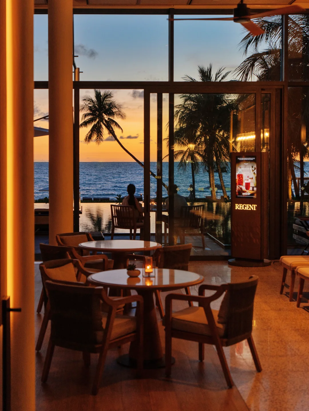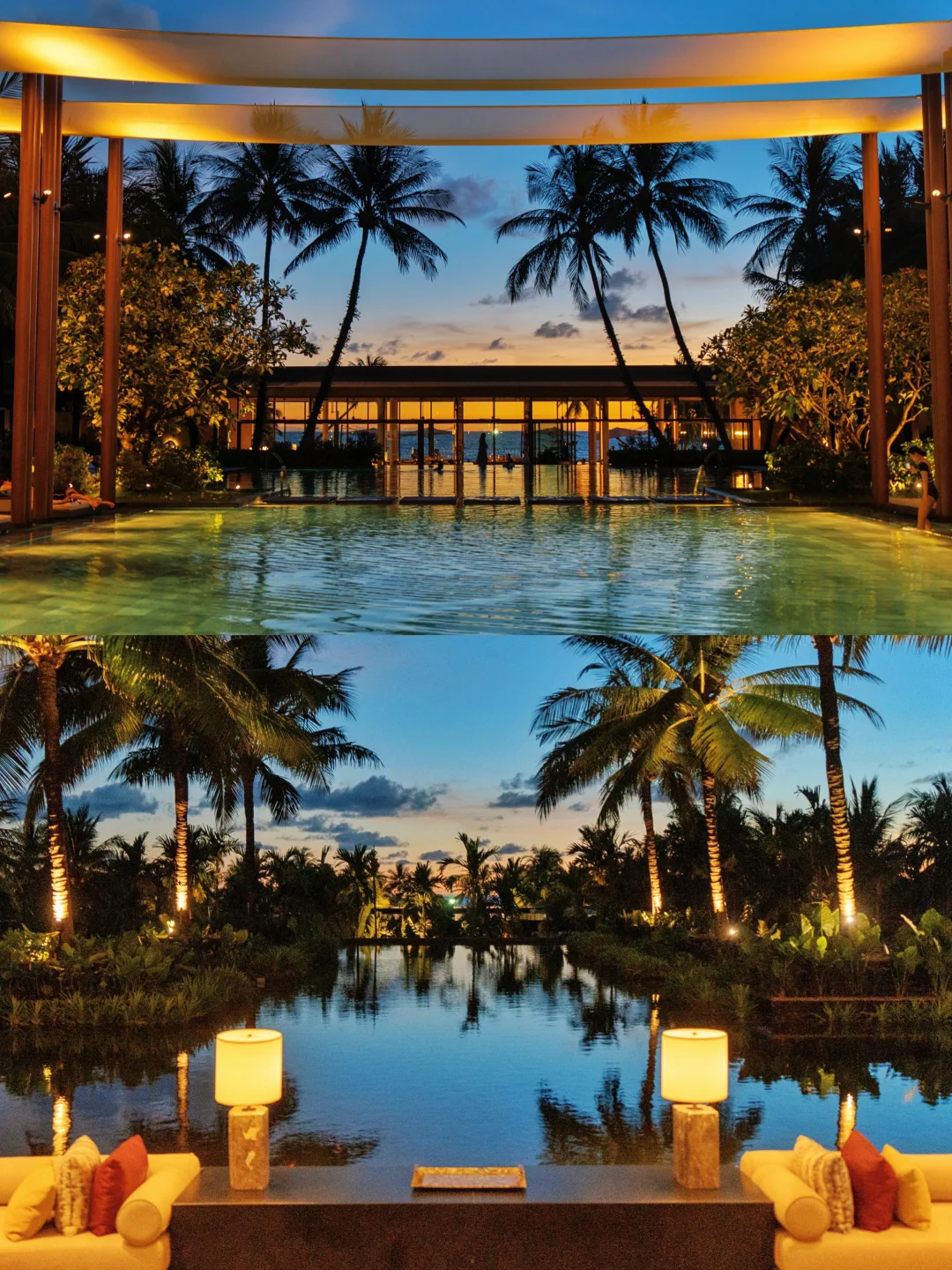 走进酒店大堂就是满满的度假感,清凉的欢迎小甜水,瞬间赶走了海岛的湿热~无边泳池对着沙滩的日落,傍晚橘粉色晚霞倒映在泳池水面,怎么拍都好好看!来杯免费鸡尾酒,开启happy hour~