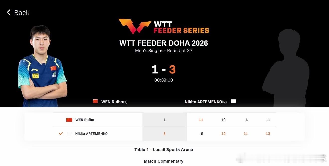 温瑞博1比3尼基塔温瑞博支线赛惨遭一轮游!之前连续两次打进决赛,但是这次在最低级别的支线赛上,温瑞博居然1比3不敌名不见经传的尼基塔止步首轮!小将的发挥还是不够稳定,国际比赛对手不熟悉的情况下,会有一些高光表现,但是还需要多个比赛的检验,打出更稳定的成绩才行。继续加油吧温瑞博止步男单首轮