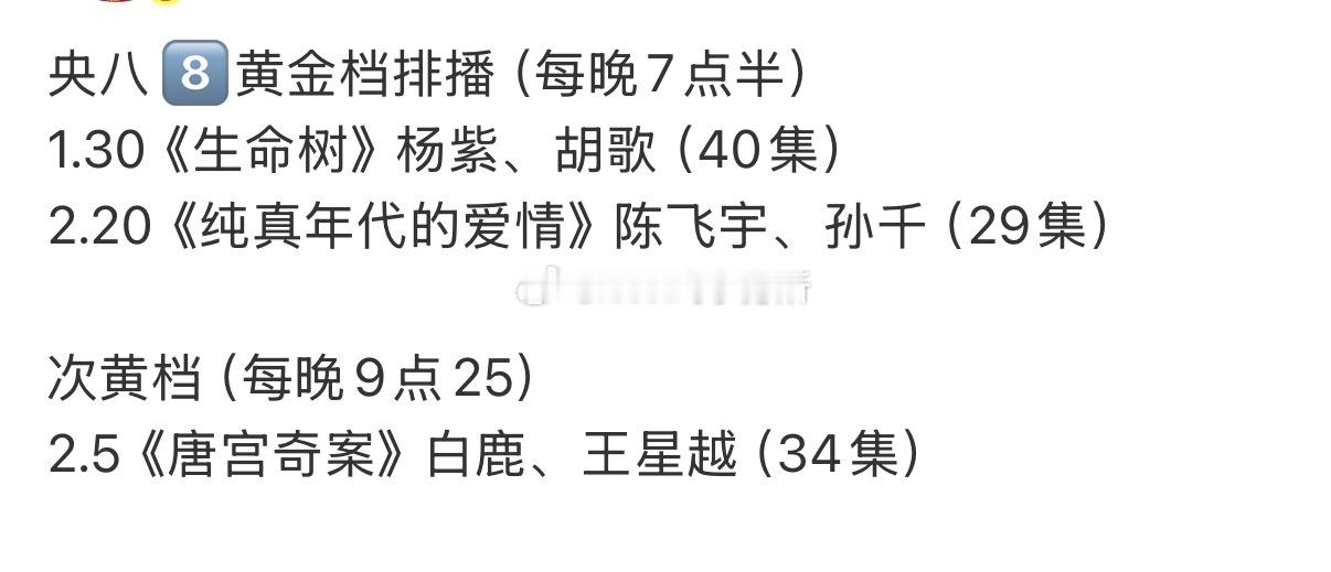 央八近期排播剧集《生命树》《纯真年代的爱情》《唐宫奇案》