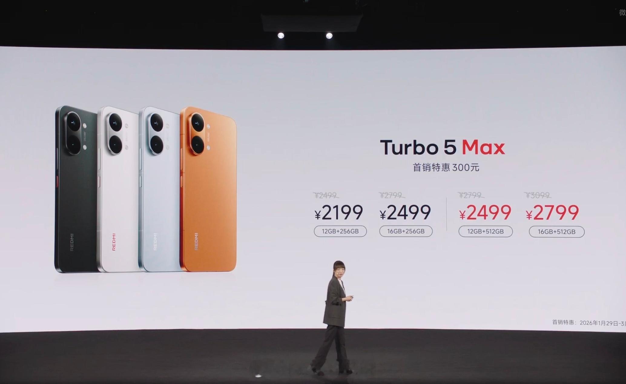 炸裂,红米Turbo5 Max价格来了,首销优惠300,2199起,这性价比太高了,尤其是512GB,才贵300首发天玑9500s,性能跑分361万000mAh 超大电量,100W 有线充电+100WPPS6.83 英寸 1.5K 大屏,M10发光材料5000 万像素高动态主摄,超声波指纹,金属中框红米Turbo5发布会