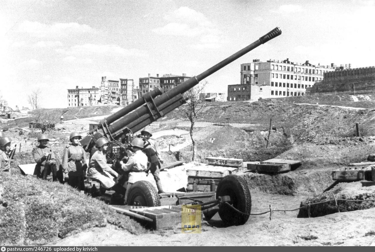 1942年,东线。苏军加里宁方面军的高射炮阵地上,一门52-К型85毫米