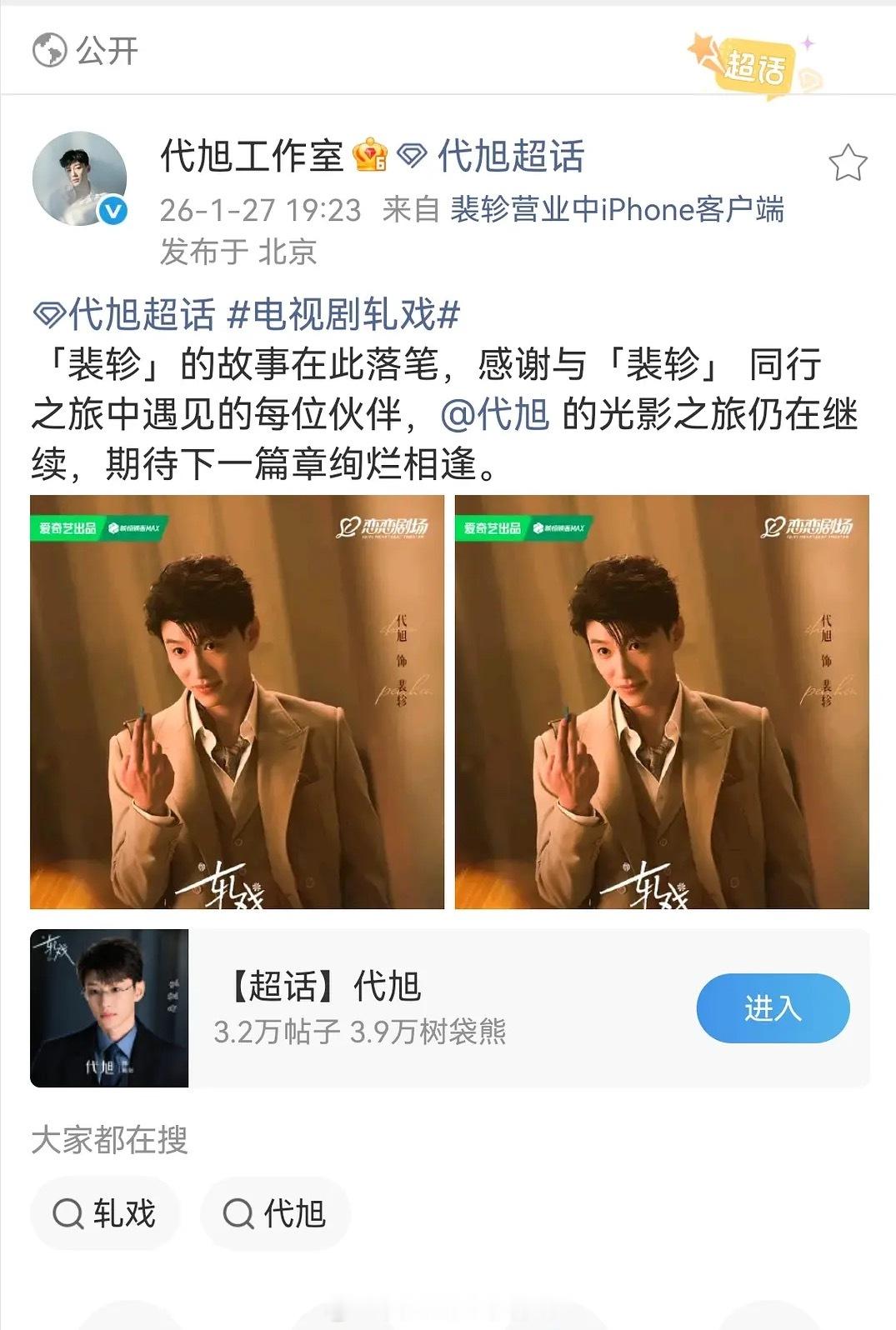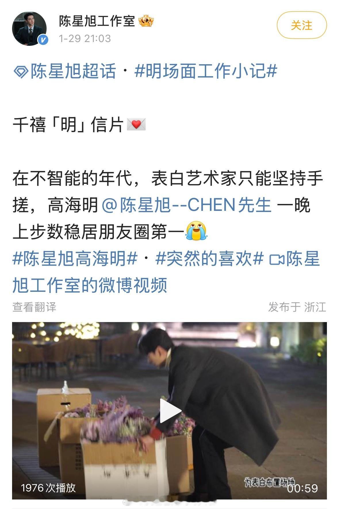 卢昱晓、代旭、任宥纶都发了轧戏 的收官战报。截至目前,一番陈星旭还没发,在勤勤恳恳营业新剧突然的喜欢 陈星旭业内口碑
