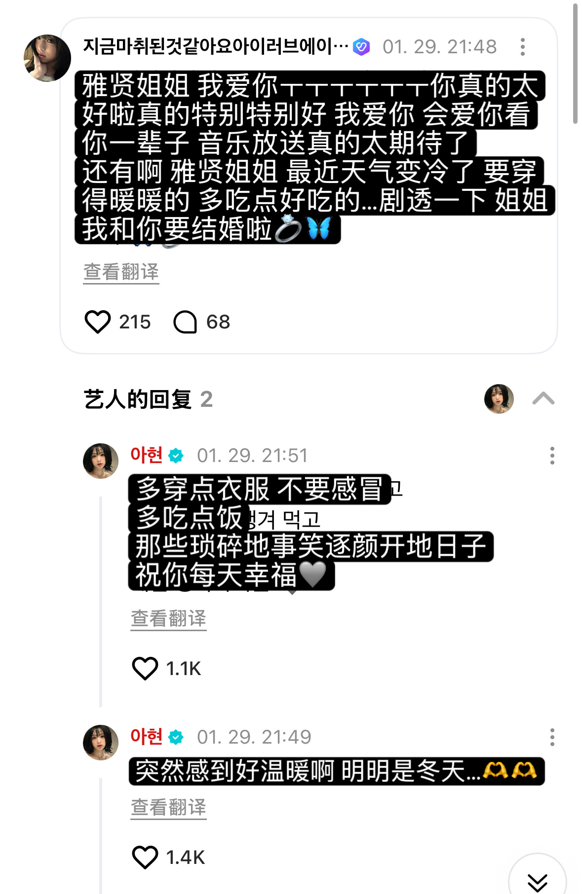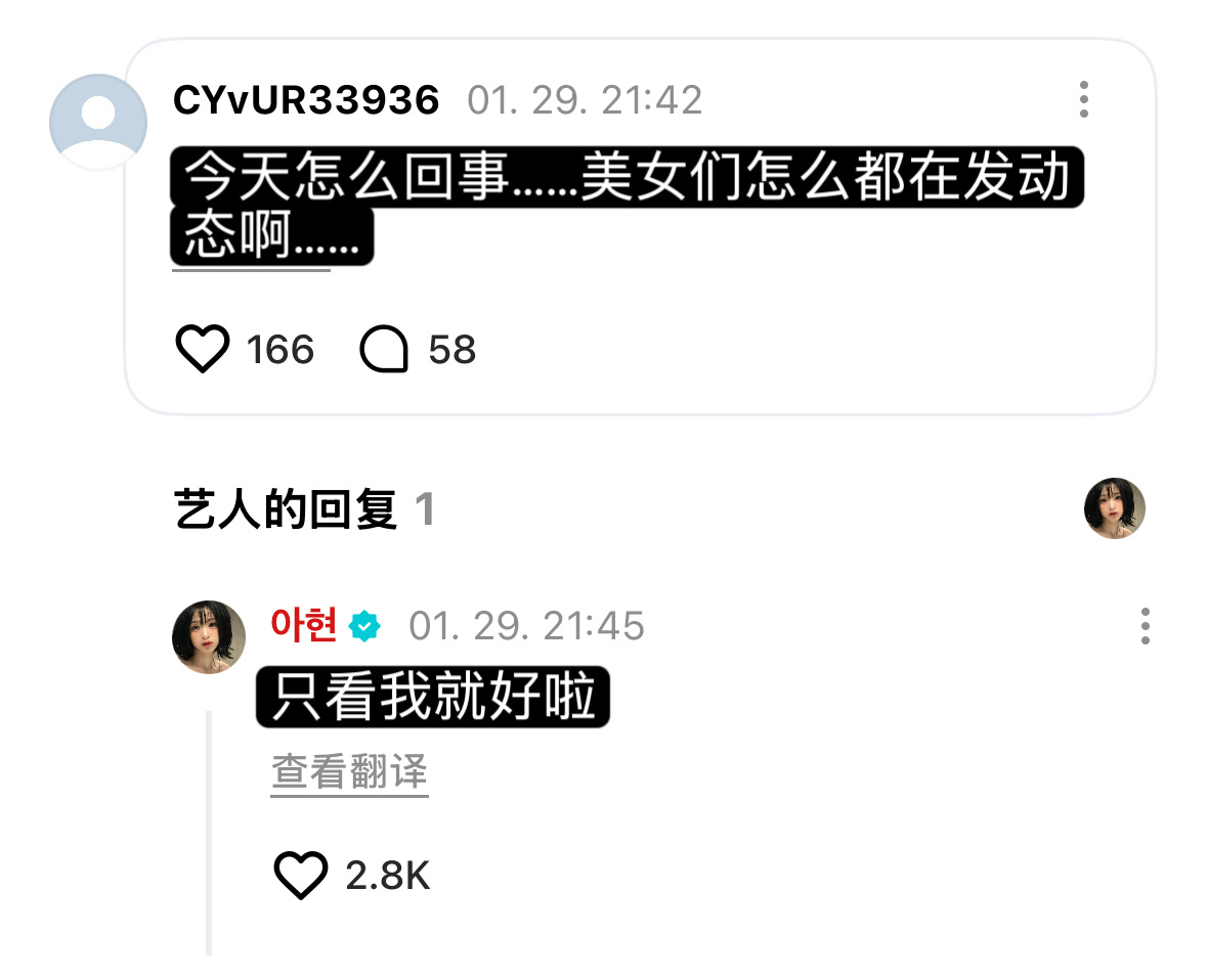 AHyeon 这个郑雅贤如此会撩🤧🩵🦋: 只看我就好啦🦋: 突然感到好温暖啊 明明是冬天…🫶🏻🫶🏻🦋: 我是你的未婚妻 我们要牵手吗~