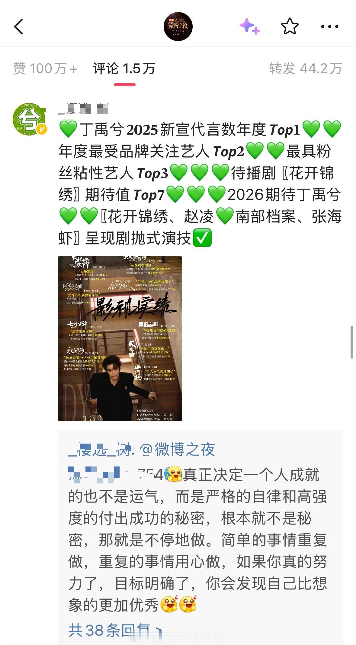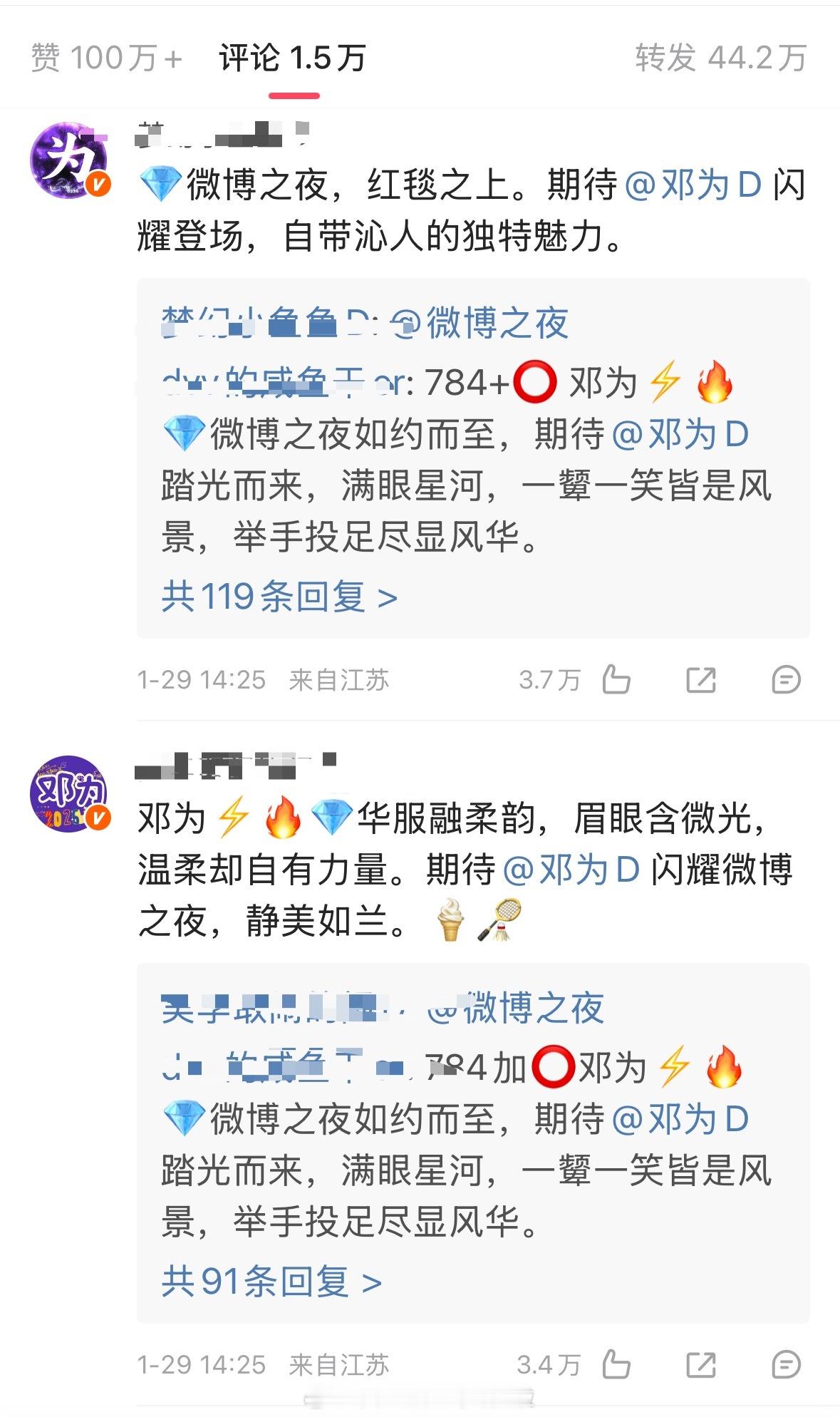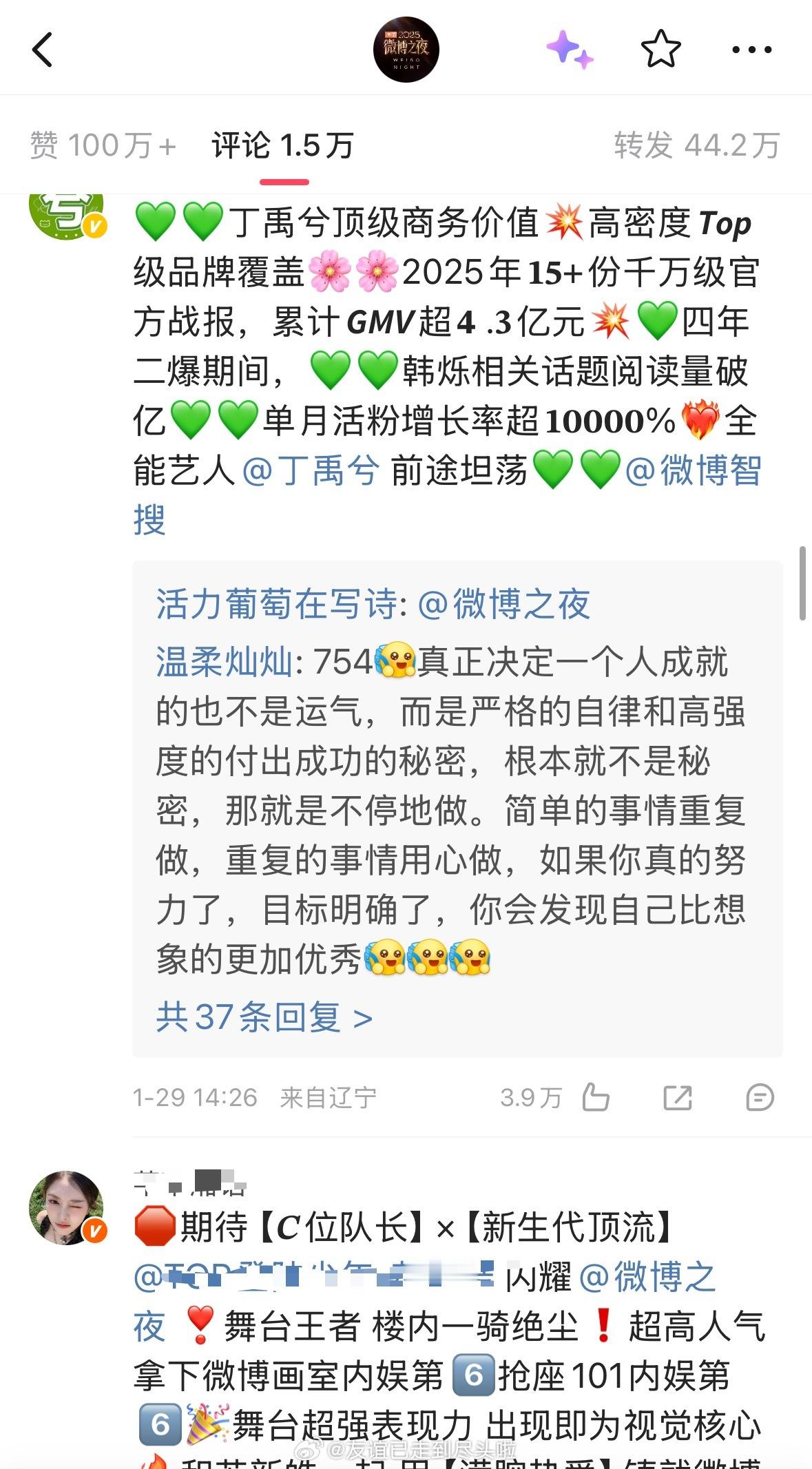 微博之夜 第三波阵容官宣博内赞超了100万!大眼上活粉还是多前十里邓为粉占6,丁禹兮粉占2,苏新皓粉占2微博之夜第三波阵容