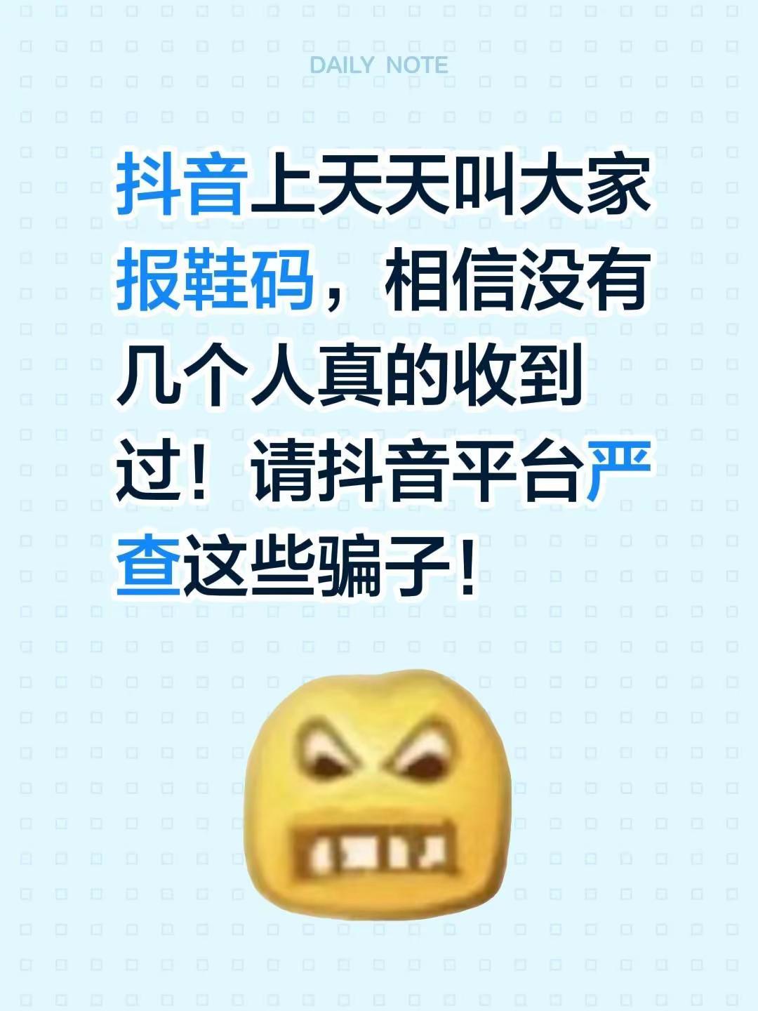 上天天叫大家报鞋码,相信没有几个人真的收到过!请平台严查这些骗子!