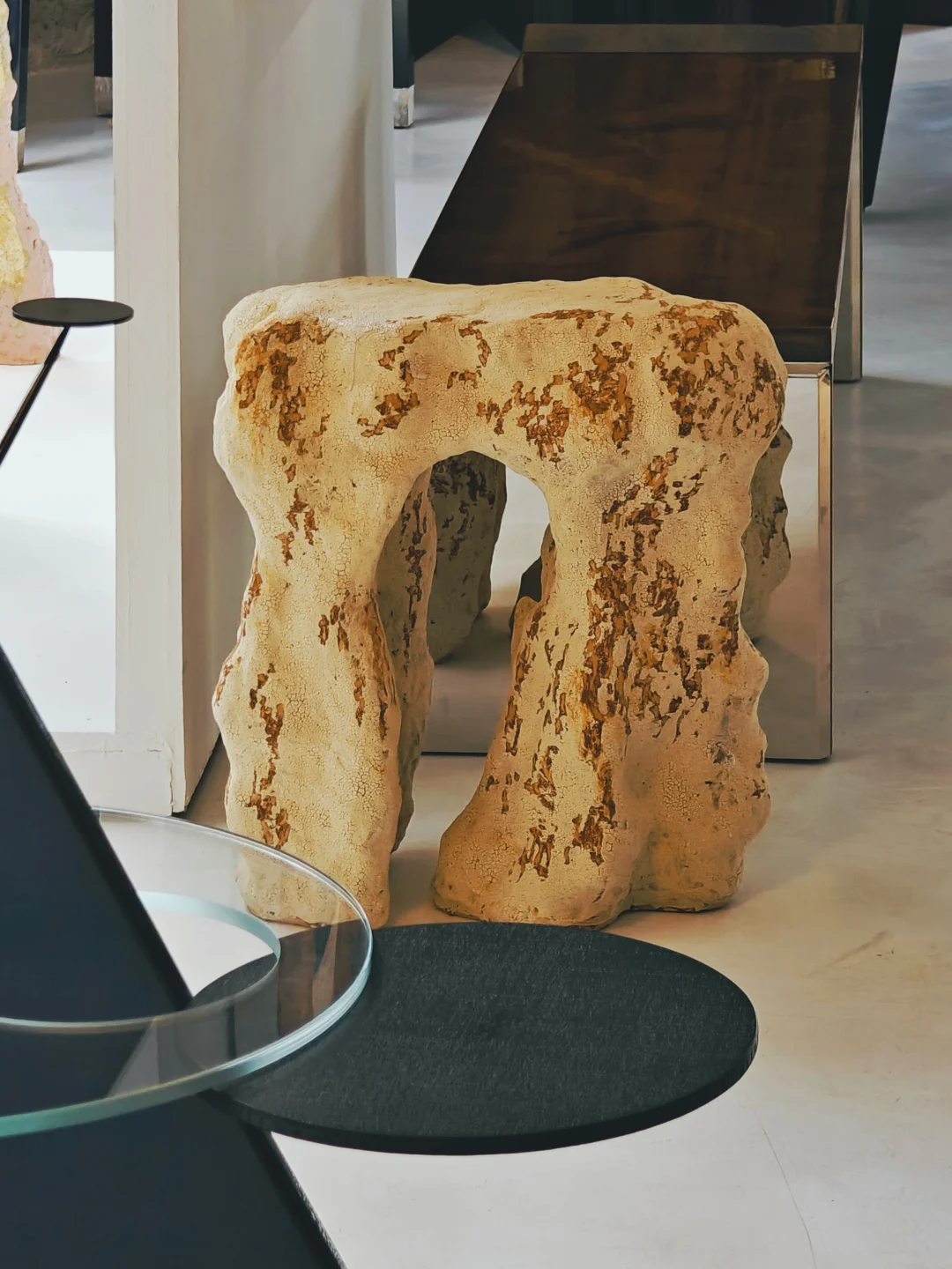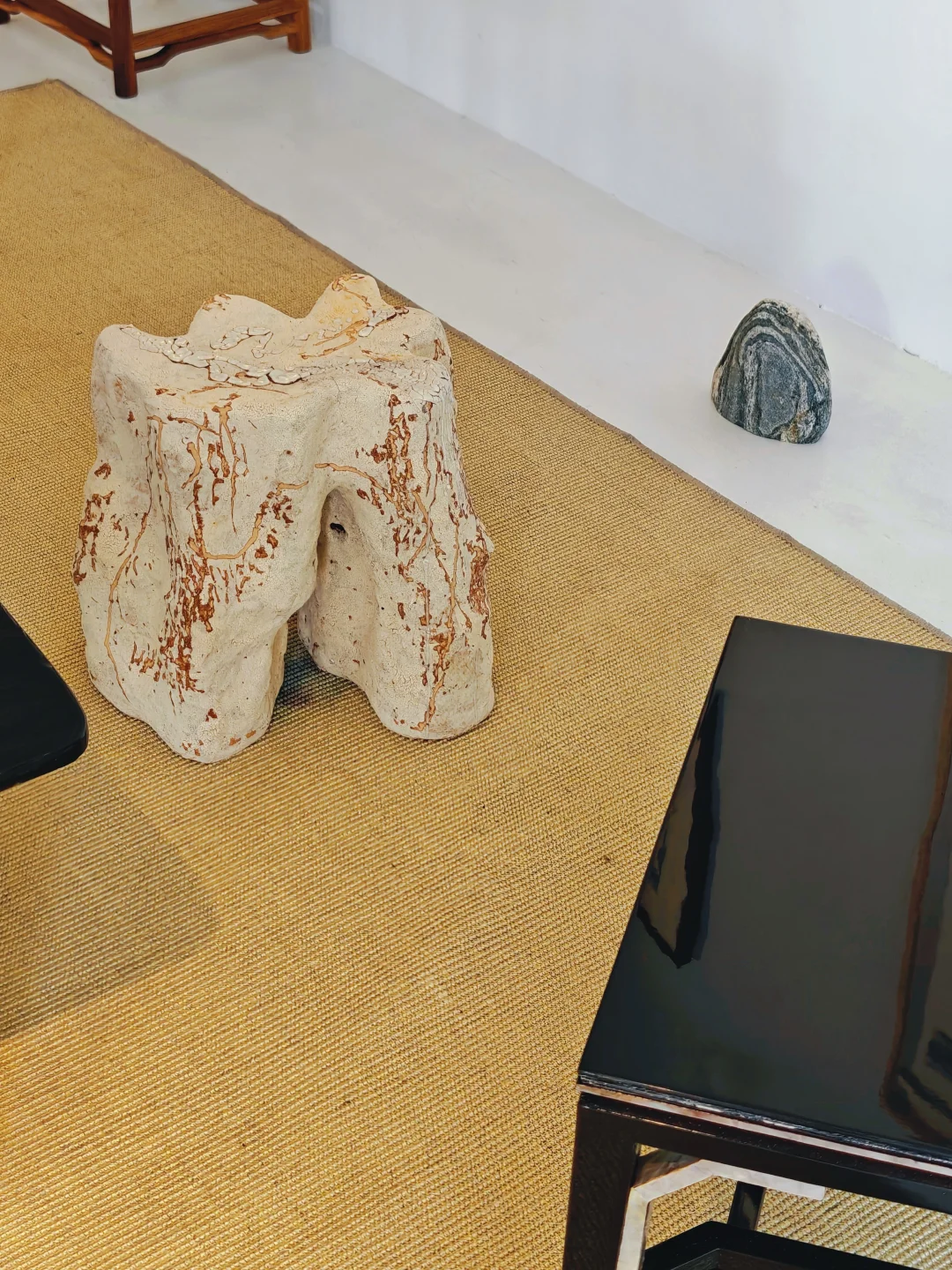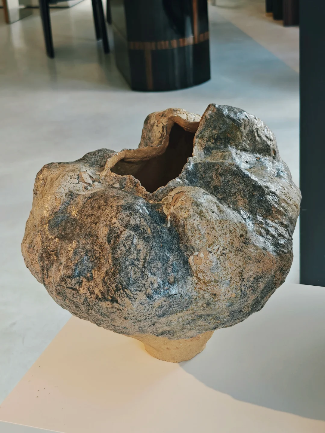 陶瓷艺术家,来自贵州凯里,目前在广东佛山进行陶瓷创作。他将陶瓷、泥土、环氧树脂、蜡、回收瓦颗粒等多种材料混合使用,不带任何计划,几乎摒弃所有工具,完全通过手工捏制每件陶瓷。作品带着对大自然的虔诚,再现雪山融化的景象、落日余晖的遐想和岩地的澄净。