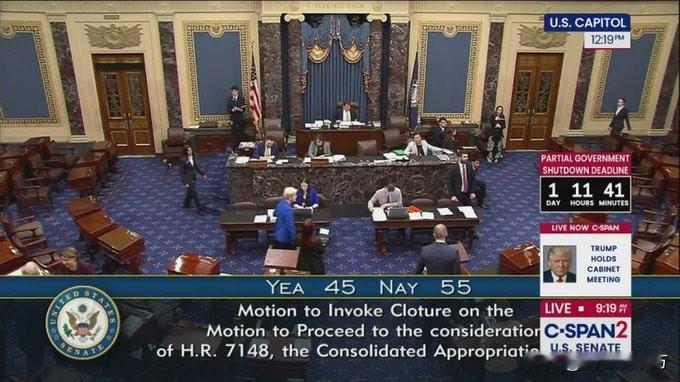 快讯:美国参议院未能通过拨款法案以避免部分政府停摆,投票结果为45票对55票。美国部分联邦机构的政府资金将于周五午夜到期。