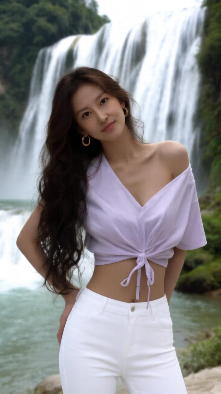 沙滩上的清新美女,蓝白相间的穿搭,阳光明媚,海风轻拂。海边女神穿搭