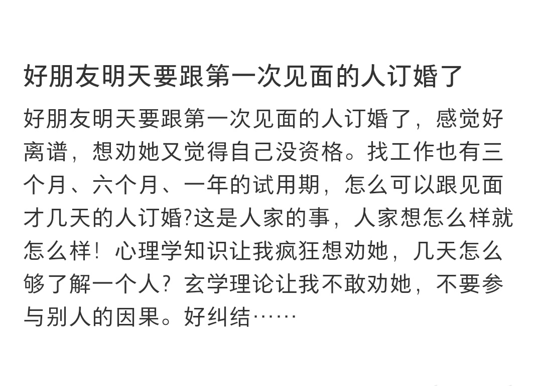 好朋友要跟第一次见面的人订婚了