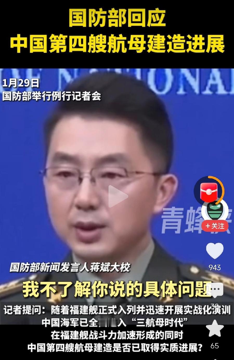 国防部回应中国第四艘航母进展,没直接说有没有,就是要让你猜!你猜我有没有?你猜我建没建?好奇与保密的顶级拉扯,不过中国人民自己心知肚明,反正咱们只需要相信,祖国永远在给我们惊喜!肯定在建,面世早晚的事!第四艘航母怎么命名,一直是坊间、网络热议的话题,不过范围应该猜得到,广东、浙江、江苏!