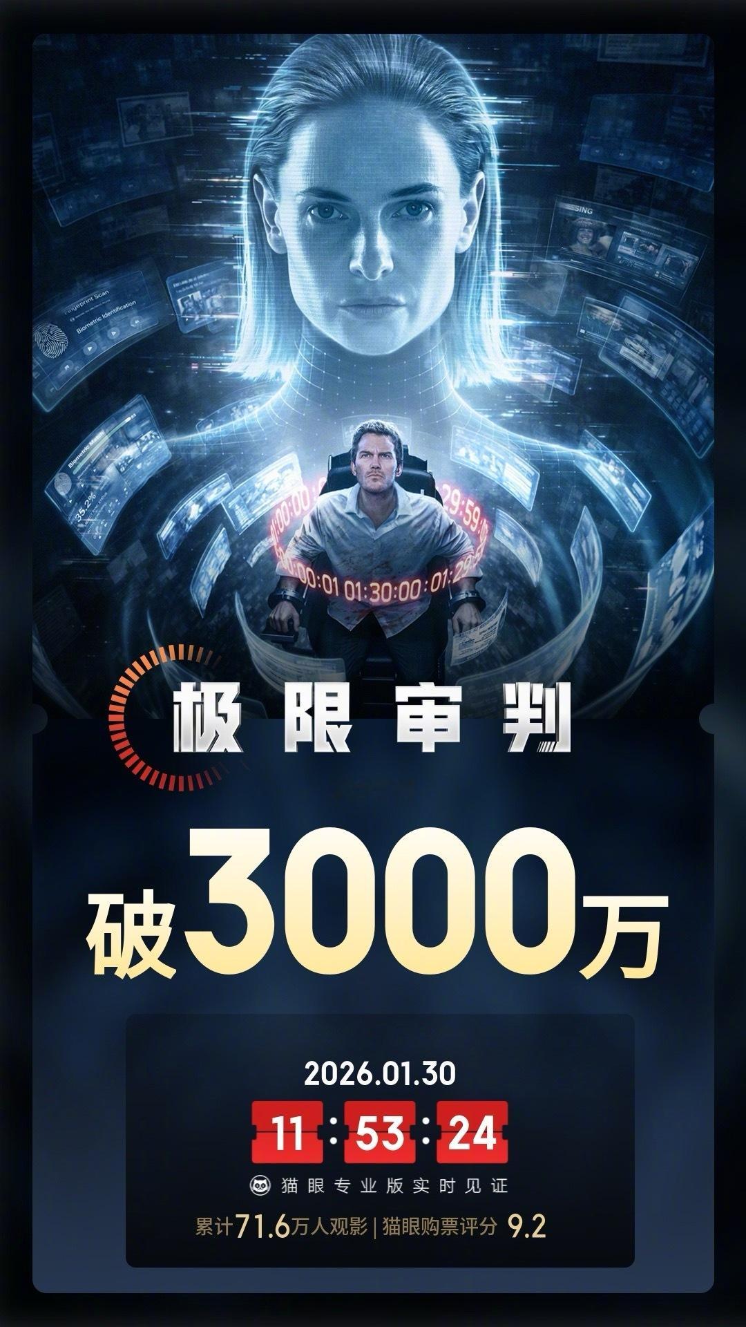 极限审判票房破3000万据猫眼专业版数据,电影《极限审判》上映8天,总票房破30