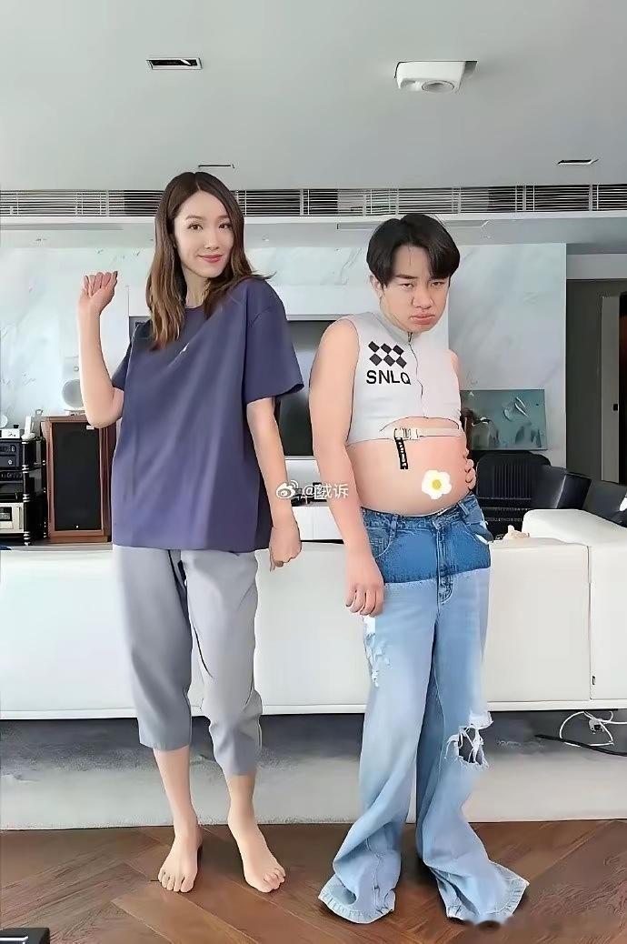 王祖蓝的裤子穿在他老婆身上秒变六分裤,夫妻俩换着穿,太搞笑了