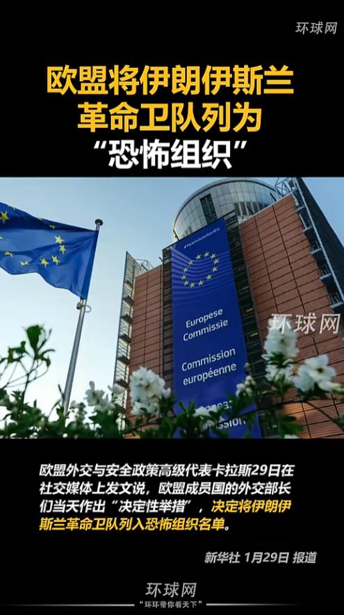欧盟突然放出大招,27个成员国的外长们终于达成一致,干了件震动中东的大事,把伊方伊斯兰革命卫队正式列为“恐怖组织”,还顺带追加制裁,盯上了伊朗15名个人和6个实体。   这消息一传开整个国际舆论都炸了,本就火药味十足的中东,这下直接被浇上了一桶汽油。   其实欧盟这步棋并非临时起意,之前法方还一直持观望态度,直到最近他们松口欧盟才彻底统一了口径。   要知道,美方早在2019年就先一步将其定性为恐怖组织,加拿大、澳大利亚也紧随其后站队,欧盟这次算是彻底跟上西方阵营的脚步,把对伊方的施压直接拉到了满格!   这一决定可不是嘴上说说那么简单,按照欧盟的规则,革命卫队在欧盟境内的所有资产都会被冻结,欧盟各国还能把和革命卫队的任何接触、合作都定性为犯罪行为。   而伊朗方面瞬间被激怒,反击来得又快又猛,外交部和武装部队总参谋部接连发声,痛批欧盟的决定“毫无道理、极其不负责任”。   还直言这压根就是在美国和以色列的施压下,搞的一场政治闹剧,压根没把革命卫队保卫伊朗、打击恐怖主义的核心作用放在眼里!   不过光口头谴责还不够,伊军方直接放话:“马上在霍尔木兹海峡举行实弹军演,用实打实的军事行动回怼欧盟的挑衅。”   伊朗革命卫队本就是伊朗的核心军事力量,扛起了国防守土、国内维稳的重任,欧盟将其列为恐怖组织,本质上就是对伊朗国家主权的公然挑衅和无理冒犯。   这一闹,伊欧关系直接跌入冰点,原本就进展艰难的伊核协议谈判,这下更是彻底没了盼头。