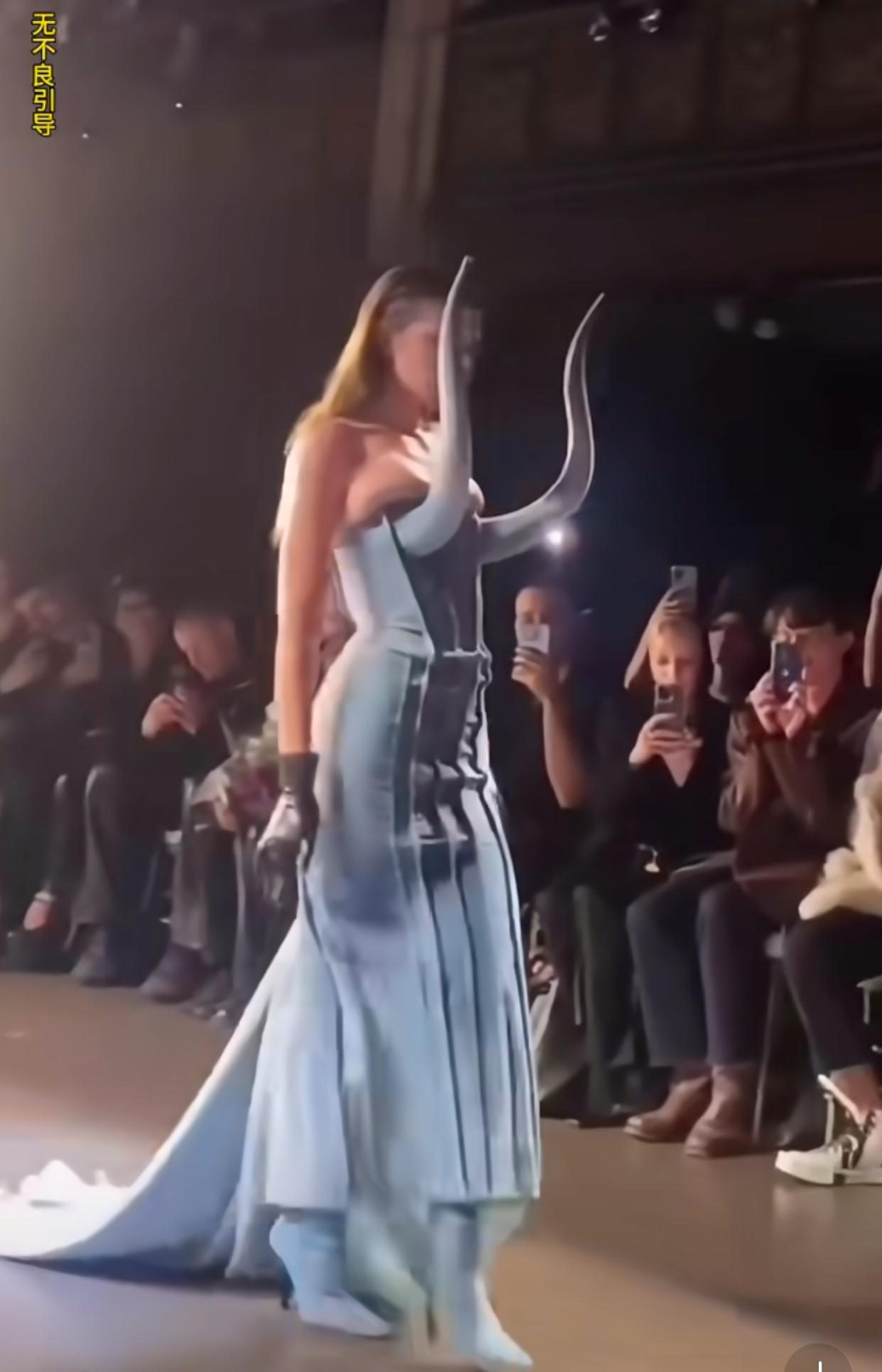 看看,看看,都把模特挤成什么样了 不知道的还以为模特有多胖呢,其实模特已经瘦成皮包骨了 但是没想到,设计师更刁钻,把衣服设计成模特都穿不了的尺寸 也不知道这种衣服谁能穿上啊,恐怕除了小孩子没有人能穿上吧? 但是哪个小孩子会穿这种衣服呀?这明显是成年人穿的呀