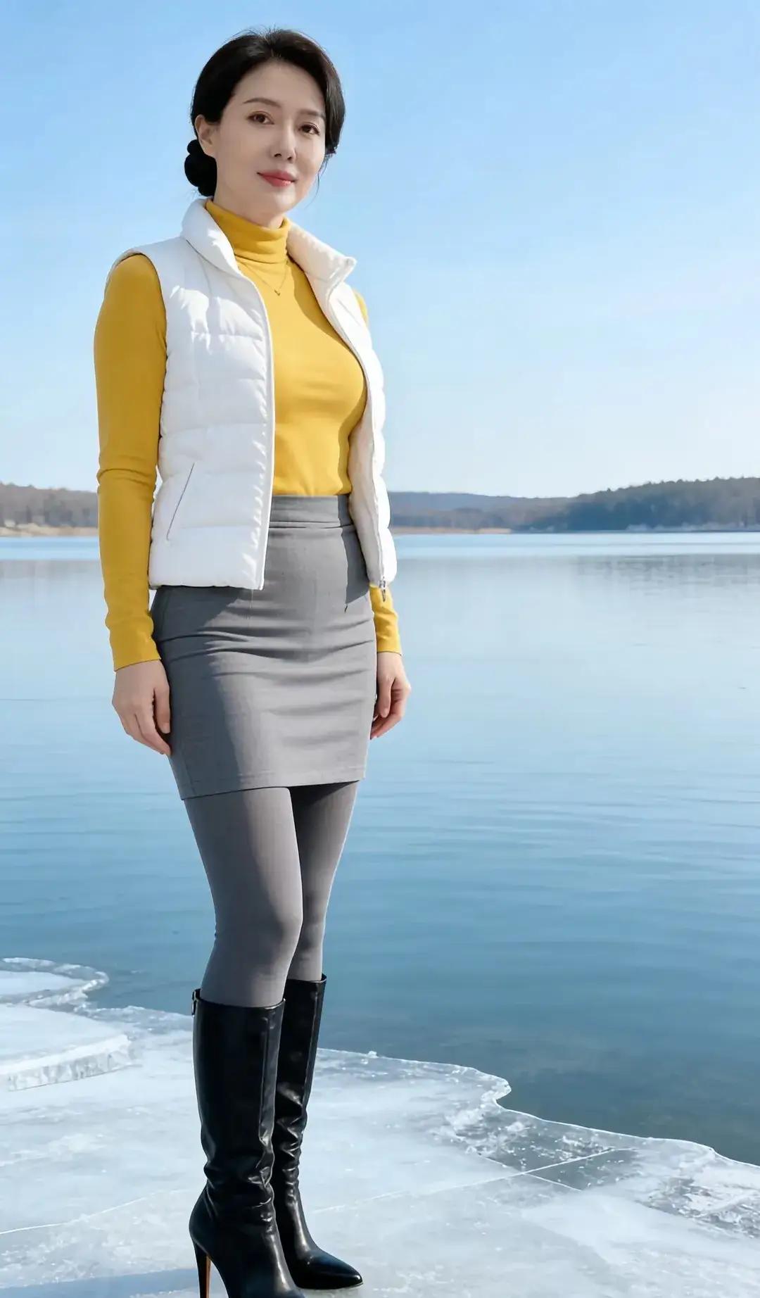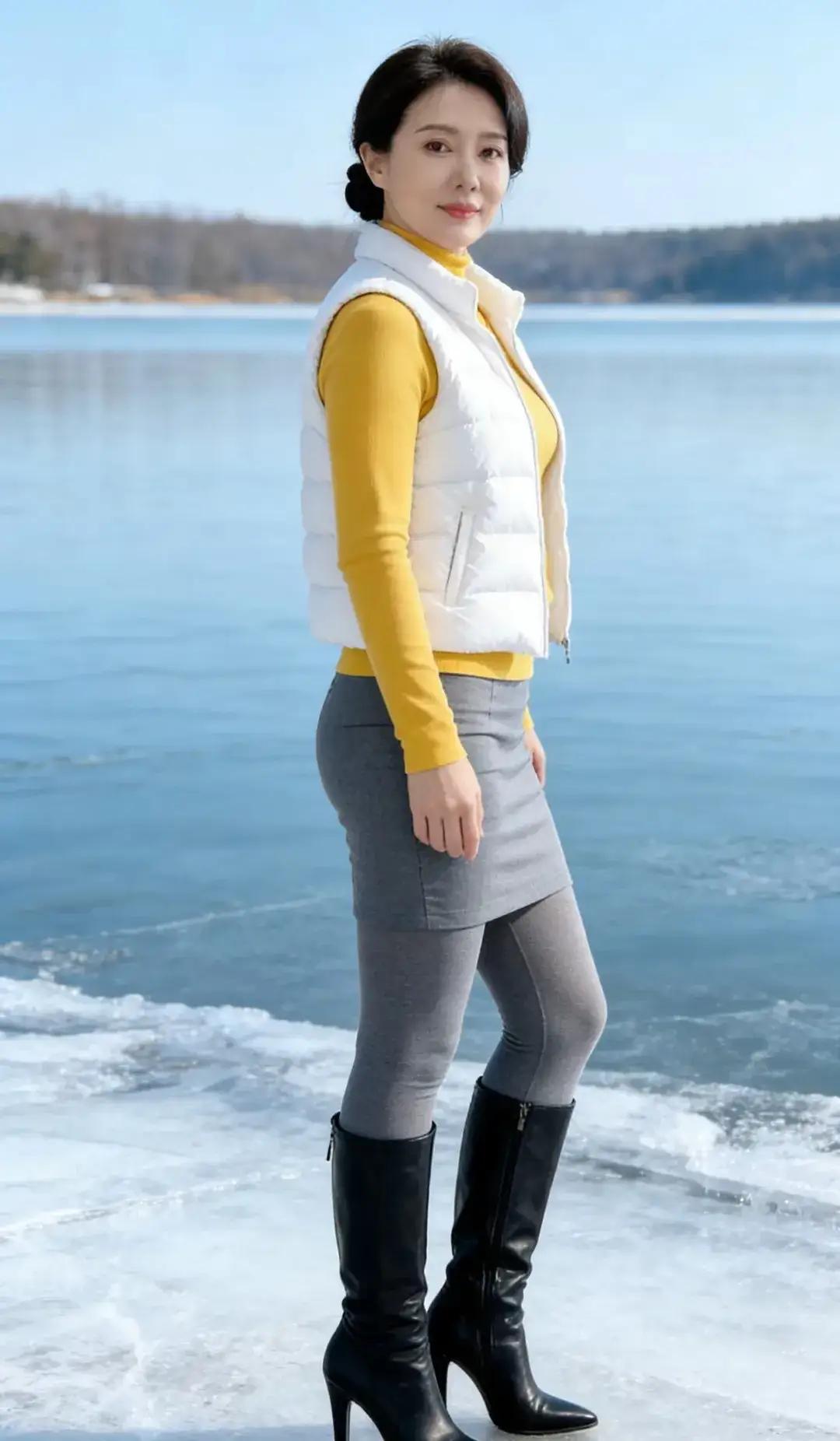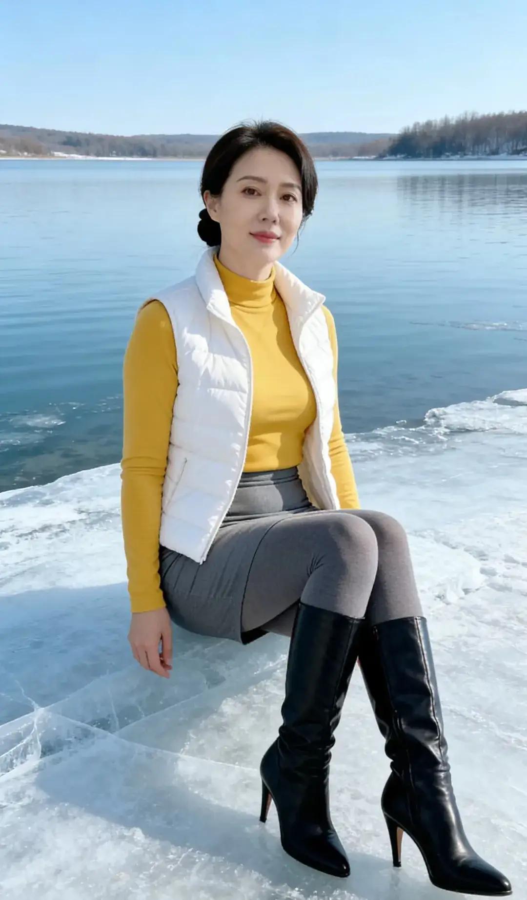冰上美人坐,湖光映影长。