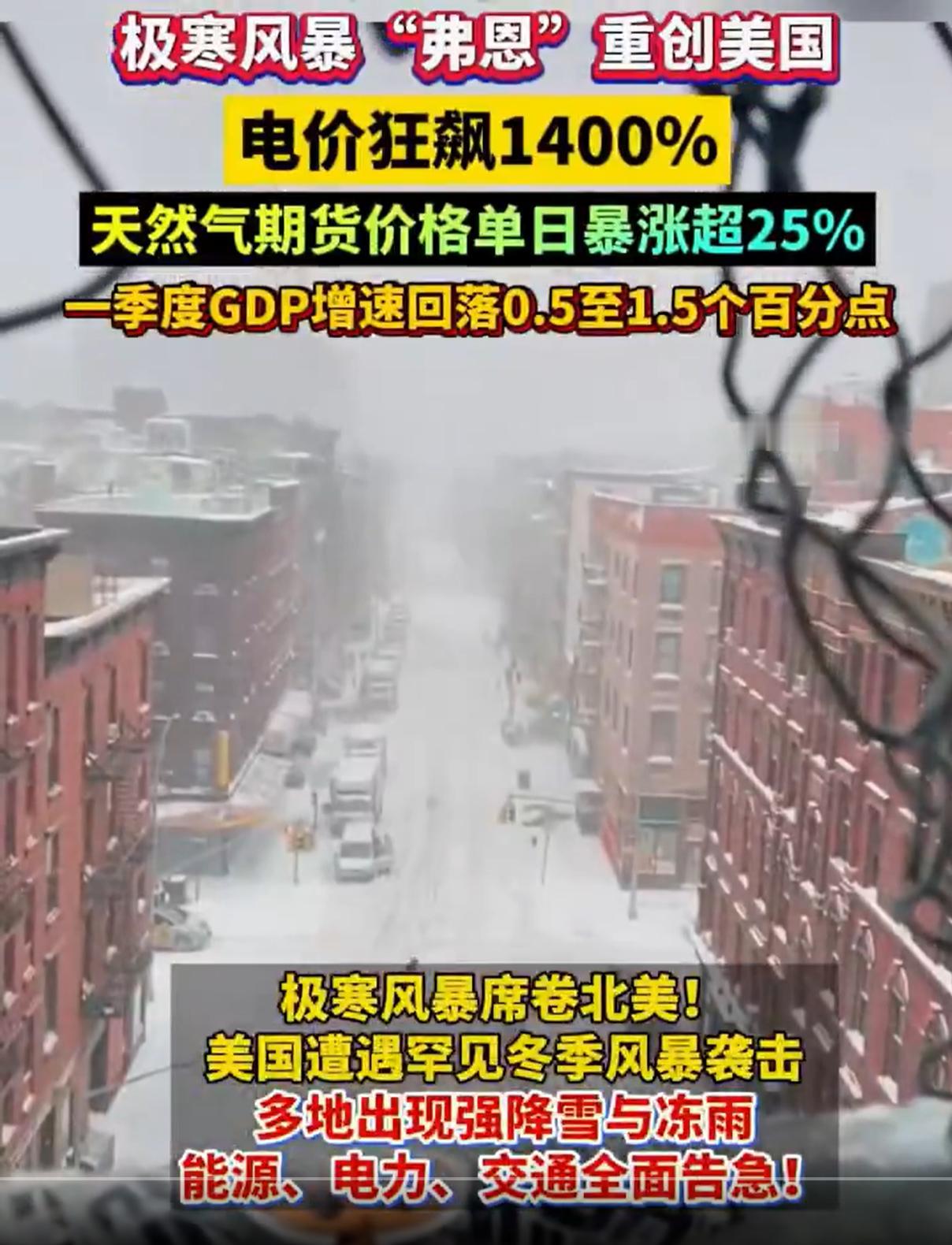 极寒风暴来袭,美国电价狂飙1400% 天然气期货价格单日暴涨超25%! 要在中国早被骂死了!