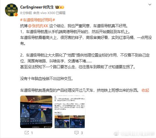 车道级导航是车上最无用功能之一吗 这个观点,我也有所体会。主要是酷炫,突然从很宏观的导航,变成了微观的车道级---它其实有自己的意义,比如说在复杂的匝道口,有时候提示你左转,但你往左看竟然有3个路口的时候,提示你走哪条道是真有用。