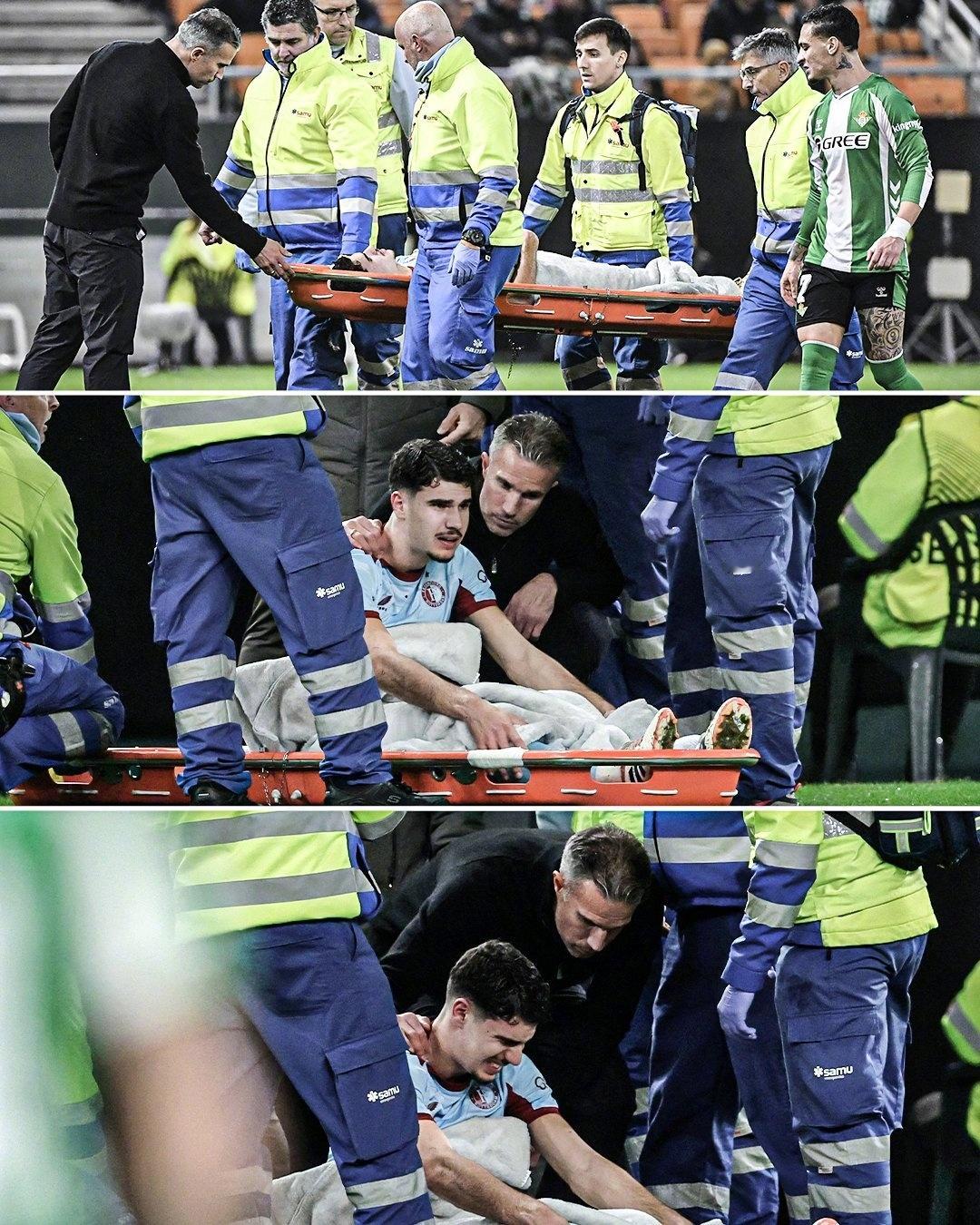 欧联杯联赛阶段第8轮,费耶诺德客场1-2不敌贝蒂斯,费耶诺德主帅范佩西含泪谈到儿子的伤情。年仅19岁的沙奎尔下半场替补出场11分钟,疑似遭遇膝盖重伤。是在一次争抢头球发生的,从视频回看落地时膝盖过度屈伸,这个动作会造成十字韧带断裂…沙奎尔也知道自己伤势很严重,在被抬出场时他流下了眼泪。希望情况不会太糟吧!毕竟他的职业生涯赛季才刚刚有点起色…范佩西