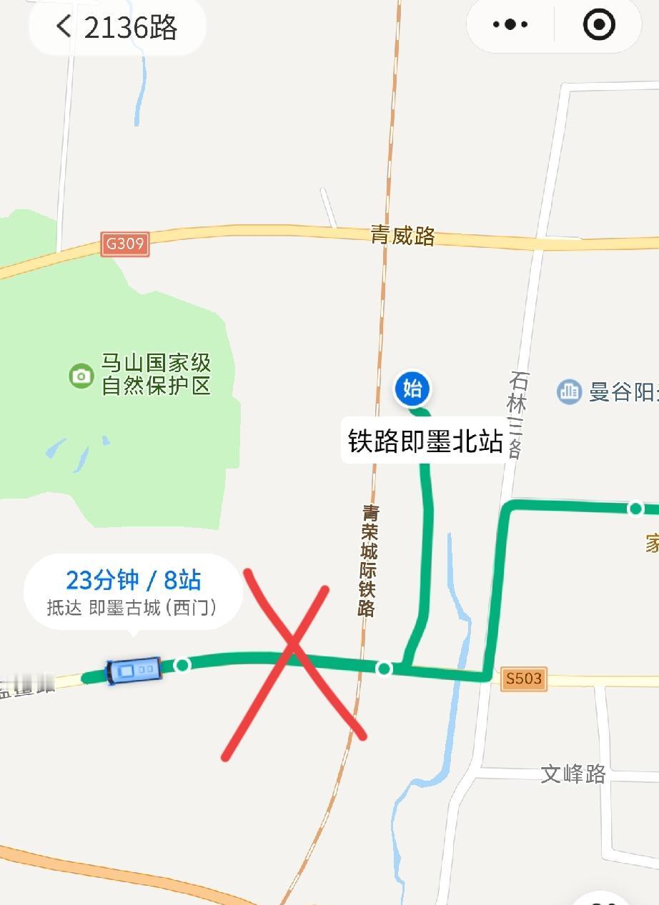 即墨交运2136路公交车(铁路即墨北站—山东大学公交换乘站)应该取消蓝鳌路上的马山公园站点!马山公园那里很少有乘客,而且也不顺路,公交车需要在马山公园西边的京源医院路口掉头再发往山大或者回铁路即墨北站。 2136路走即墨古城和创智新区就挺费时间的,早晚高峰期要接近两个小时才到山大,有需要去马山公园的乘客完全可以在服装市场换乘2012路,2110路,2109路等线路,很方便!线路绕行马山公园纯粹是画蛇添足!