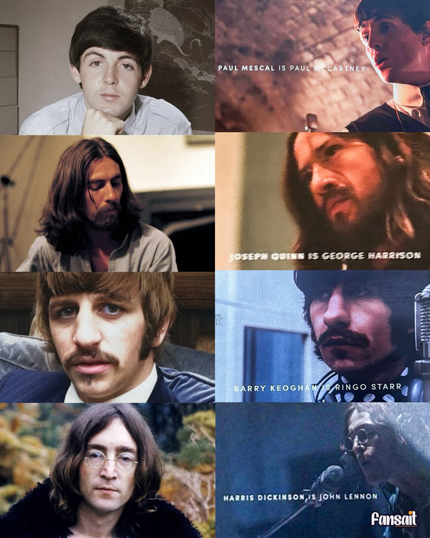 The Beatles披头士传记片四位成员角色定妆照和人物原型对比!感觉如何?• 哈里斯·迪金森扮演约翰列侬• 保罗麦斯卡扮演保罗·麦卡特尼• Joseph Quinn扮演乔治·哈里森• 巴里基奥恩扮演林戈·斯塔尔